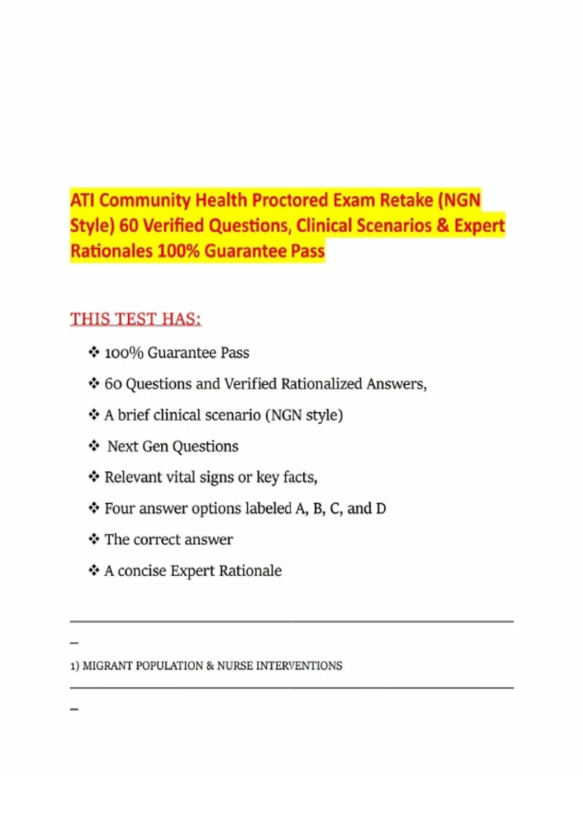 ATI Community Health Proctored Exam Retake 1 (NGN Style) 60 Verified Questions, Clinical Scenarios & ExpeATI Community Health Proctored Exam Retake 1 (NGN Style) 60 Verified Questions, Clinical Scenarios & Expert Rationales 100- Guarantee P ATI Community Health Proctored Exam Retake 1 (NGN Style) 60 Verified Questions, Clinical Scenarios & Expert Rationales 100- Guarantee P rt Rationales 100- Guarantee P