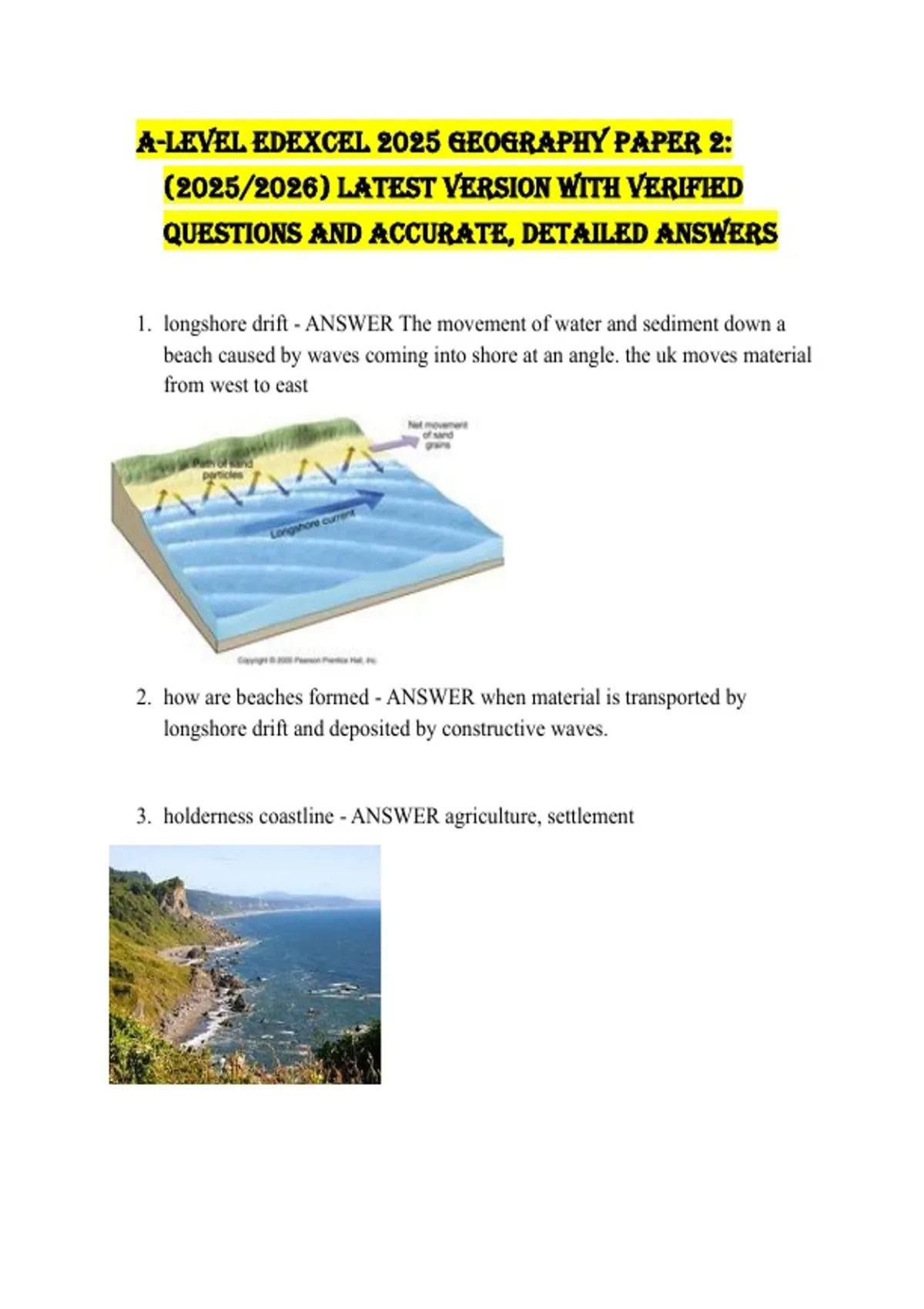 A-Level EDEXCEL 2025 Geography Paper 1, 2 and 3: (2025/2026) LATEST VERSION WITH VERIFIED QUESTIONS AND ACCURATE, DETAILED ANSWERS