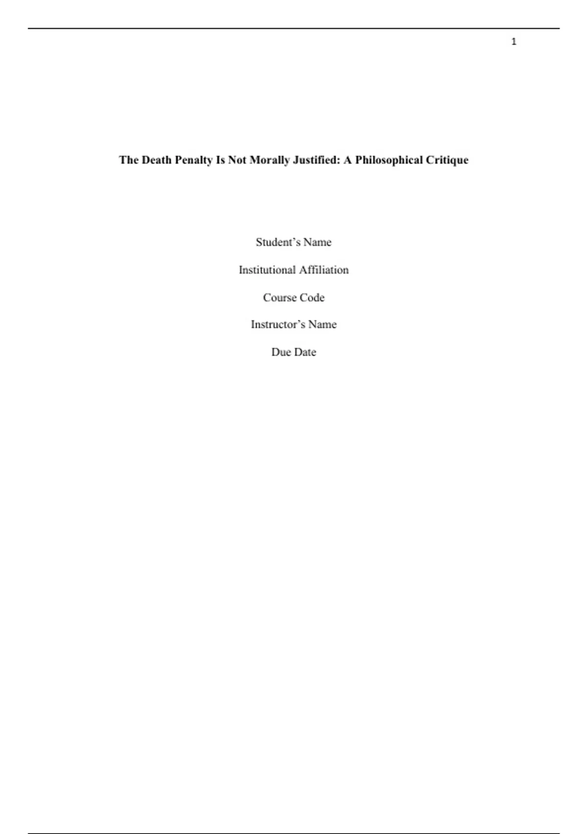 The Death Penalty Is Not Morally Justified: A Philosophical Critique