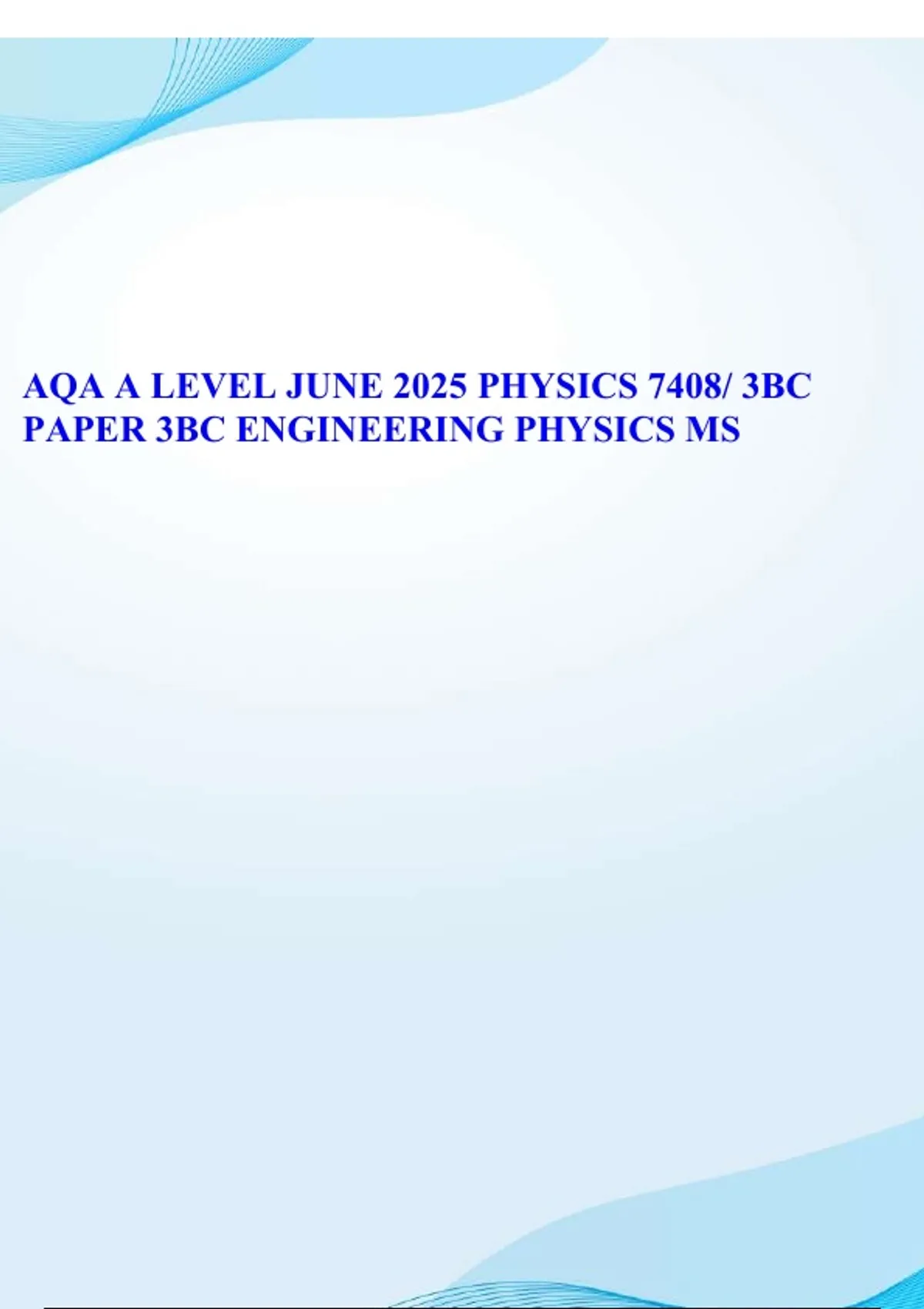 AQA A LEVEL JUNE 2025 PHYSICS 7408/ 3BC PAPER 3BC ENGINEERING PHYSICS AND MARK SCHEME STUDY BUNDLE PACKAGE WITH SOLUTIONS