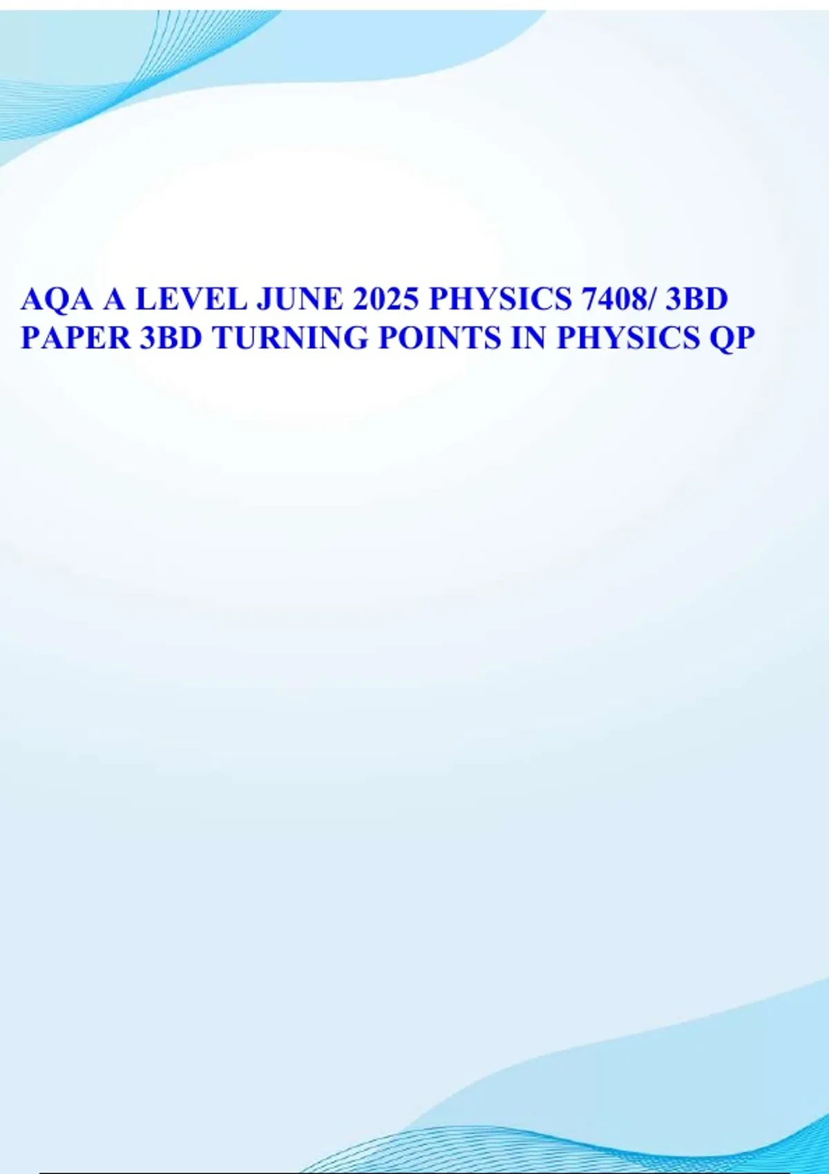 AQA A LEVEL JUNE 2025 PHYSICS 7408/ 3BD PAPER 3BD TURNING POINTS IN PHYSICS QUESTION PAPER