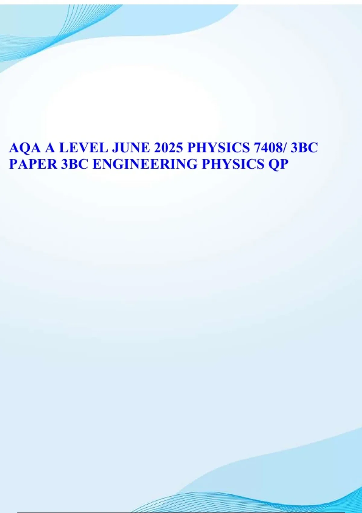 AQA A LEVEL JUNE 2025 PHYSICS 7408/ 3BC PAPER 3BC ENGINEERING PHYSICS QUESTION PAPER
