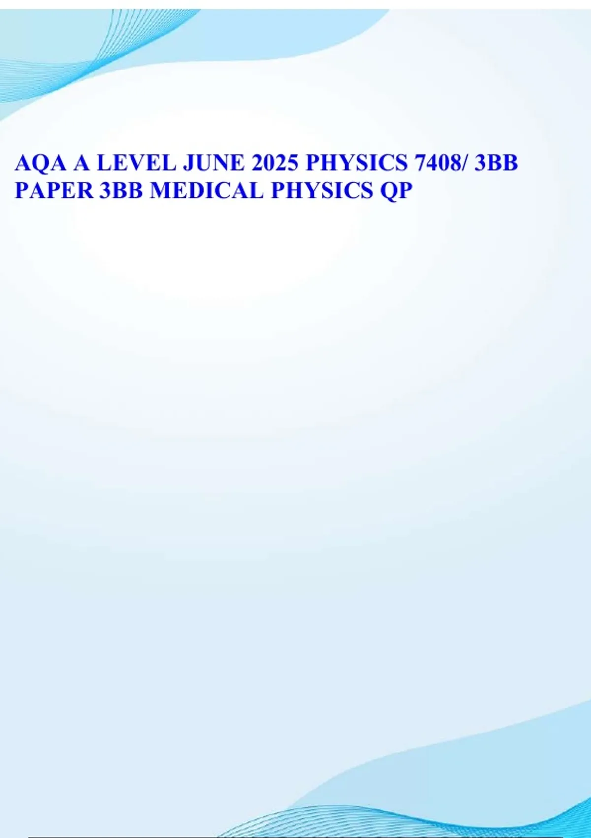 AQA A LEVEL JUNE 2025 PHYSICS 7408/ 3BB PAPER 3BB MEDICAL PHYSICS AND MARK SCHEME STUDY BUNDLE PACKAGE WITH SOLUTIONS