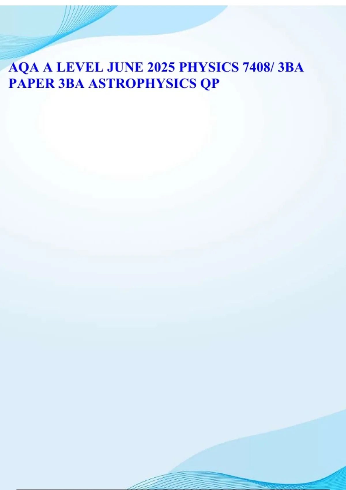 AQA A LEVEL JUNE 2025 PHYSICS 7408/ 3BA PAPER 3BA ASTROPHYSICS AND MARK SCHEME STUDY BUNDLE PACKAGE WITH SOLUTIONS