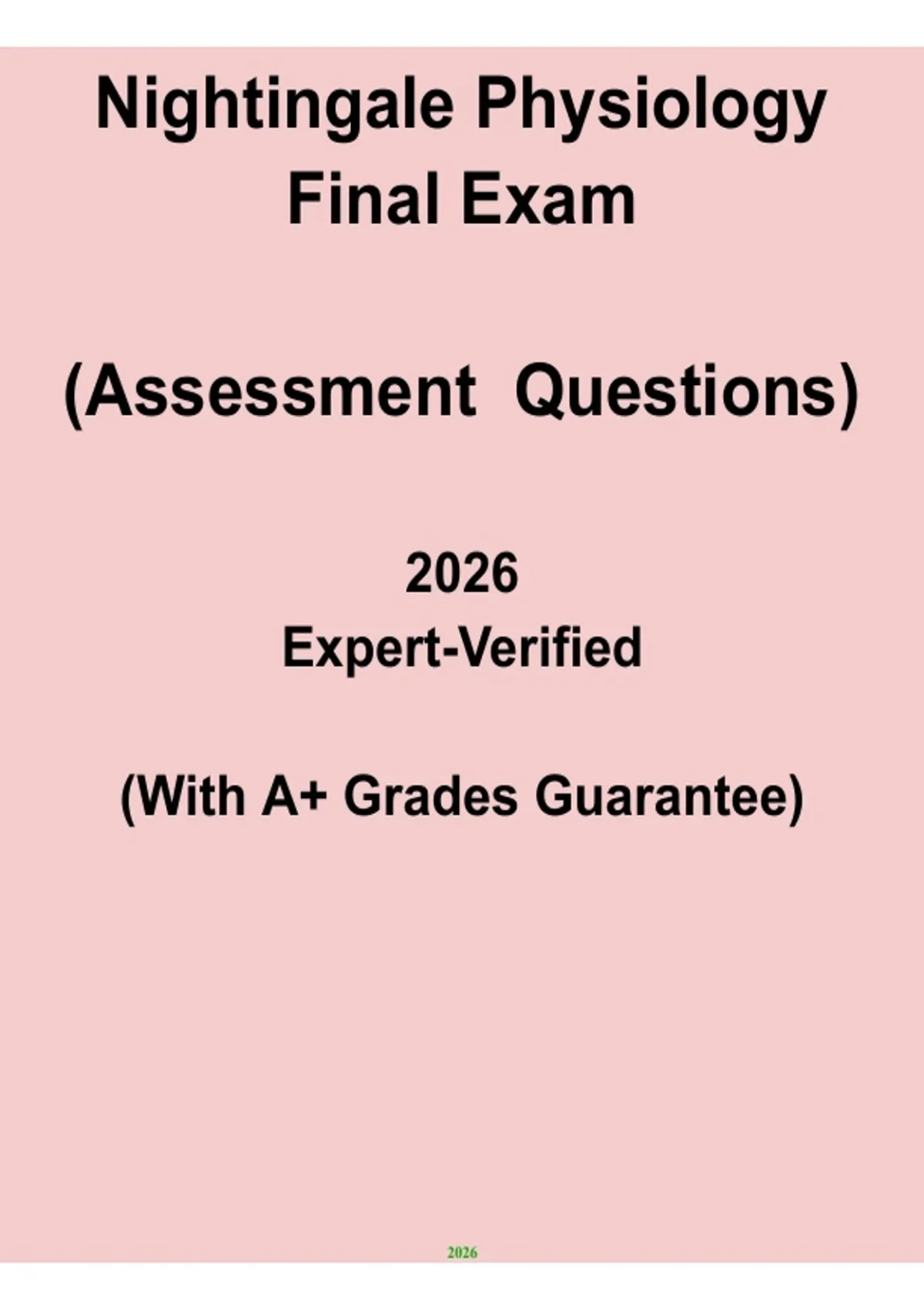 This Nightingale College Physiology Final PDF is a comprehensive 2026 exam preparation resource designed for nursing students. It covers all major physiological systems, regulatory mechanisms, cellular and organ function, and high-yield concepts commonly tested in final exams. Featuring structured review content and exam-style questions, this guide is ideal for self-assessment, focused revision, and confident exam readiness, helping students perform successfully in the Nightingale College physiology final.