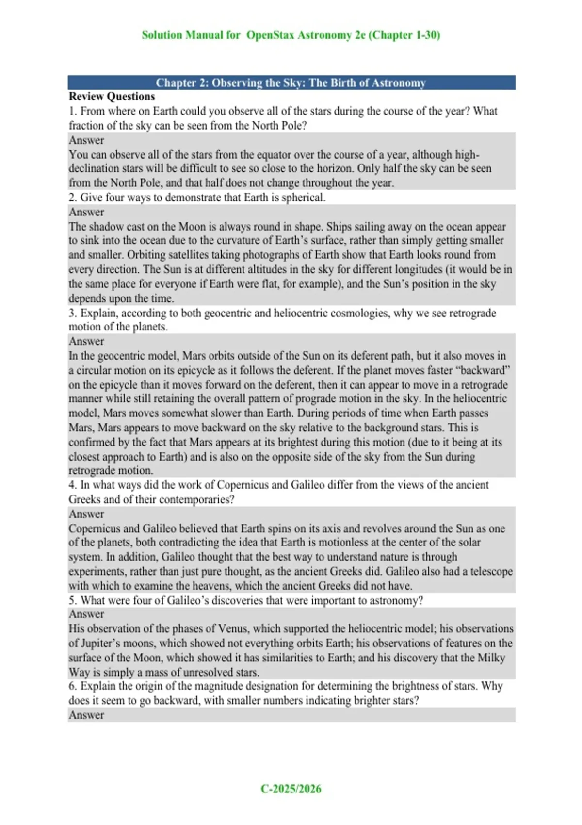 OpenStax Astronomy 2e: Solution Manual (Chapters 1–30) (2026–2027)