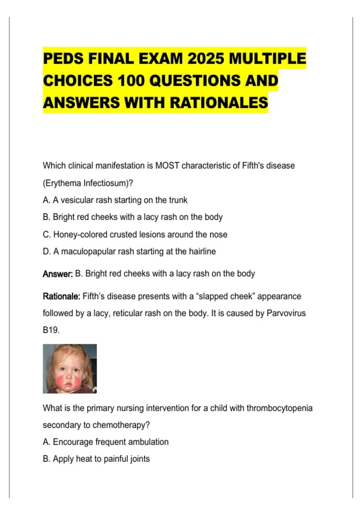 , PEDS FINAL EXAM 2025 MULTIPLE CHOICES 100 QUESTIONS ANDPage