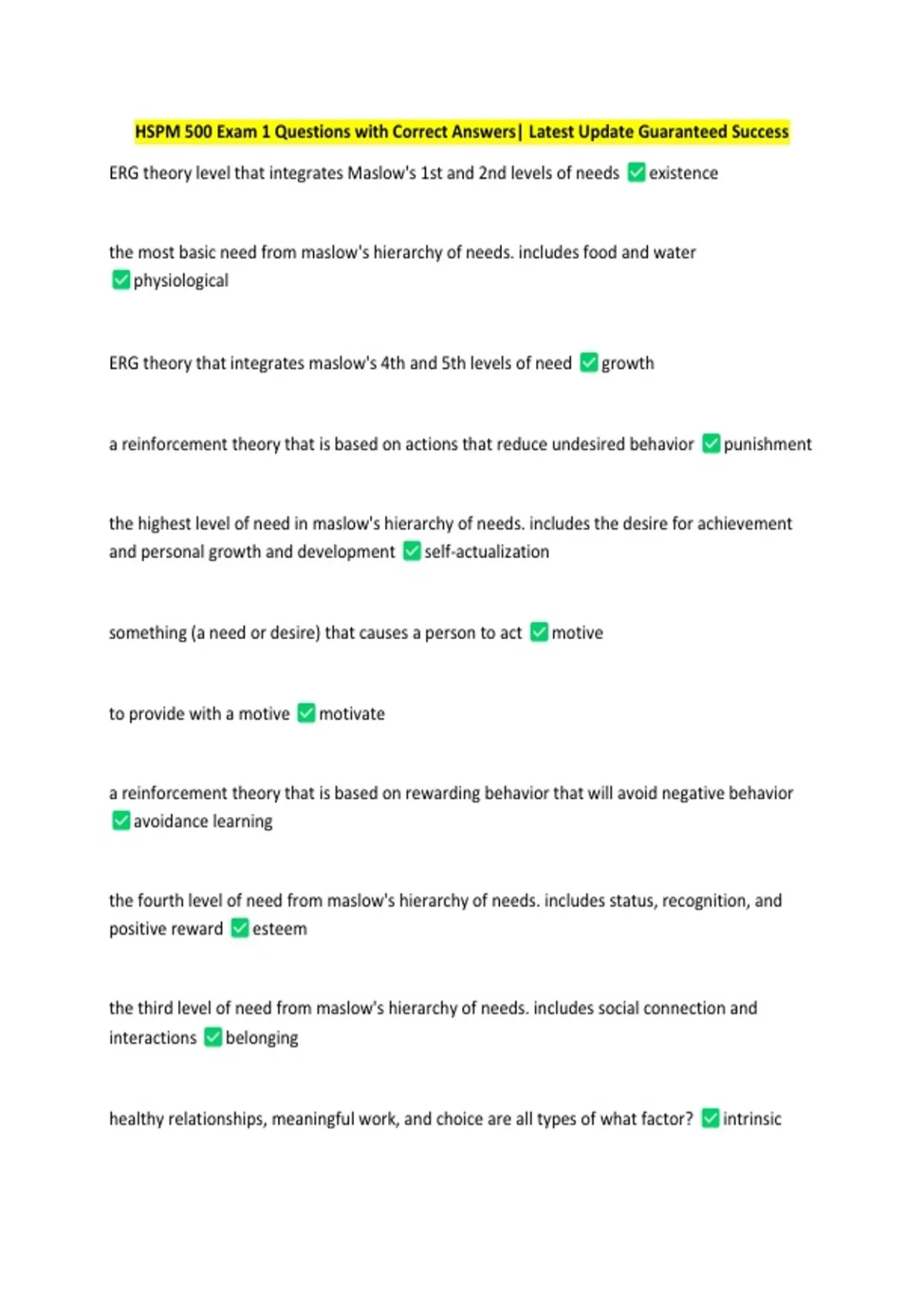 HSPM 500 Exam 1 Questions with Correct Answers| Latest Update Guaranteed Success
