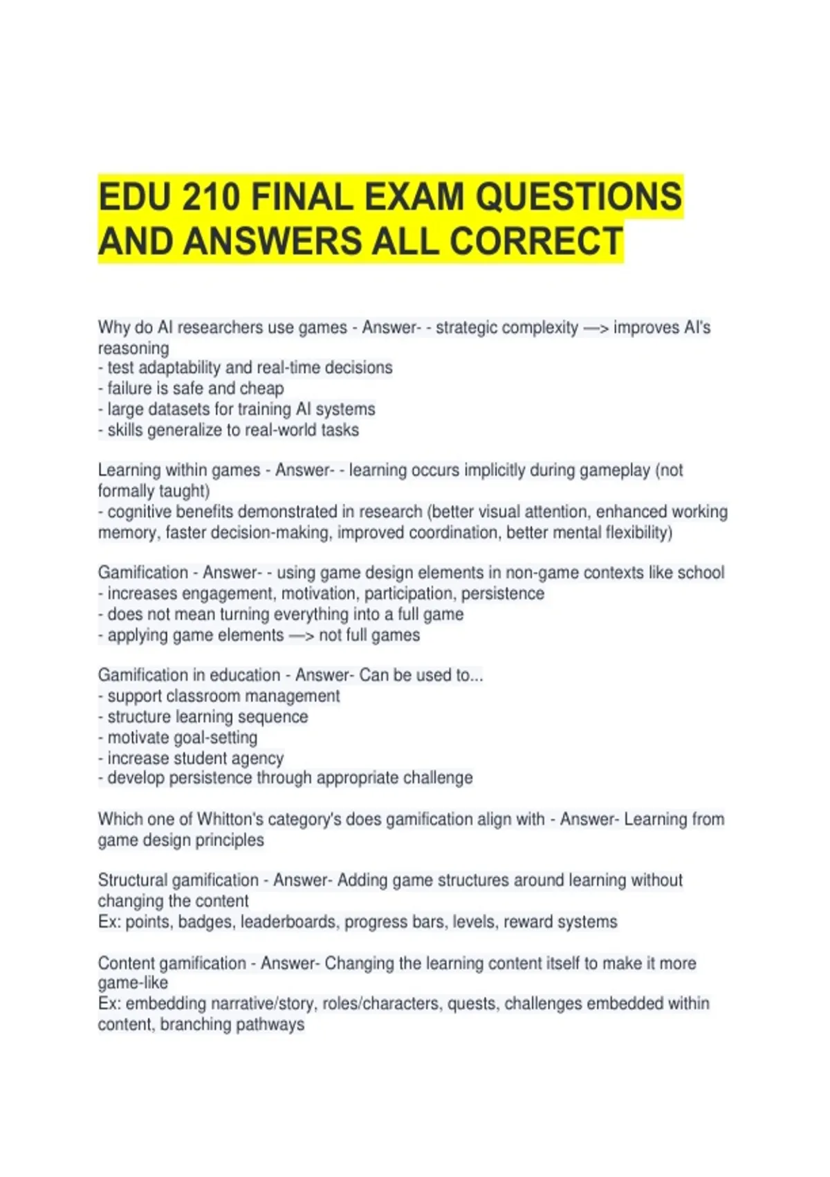 EDU 210 FINAL EXAM QUESTIONS AND ANSWERS ALL CORRECT