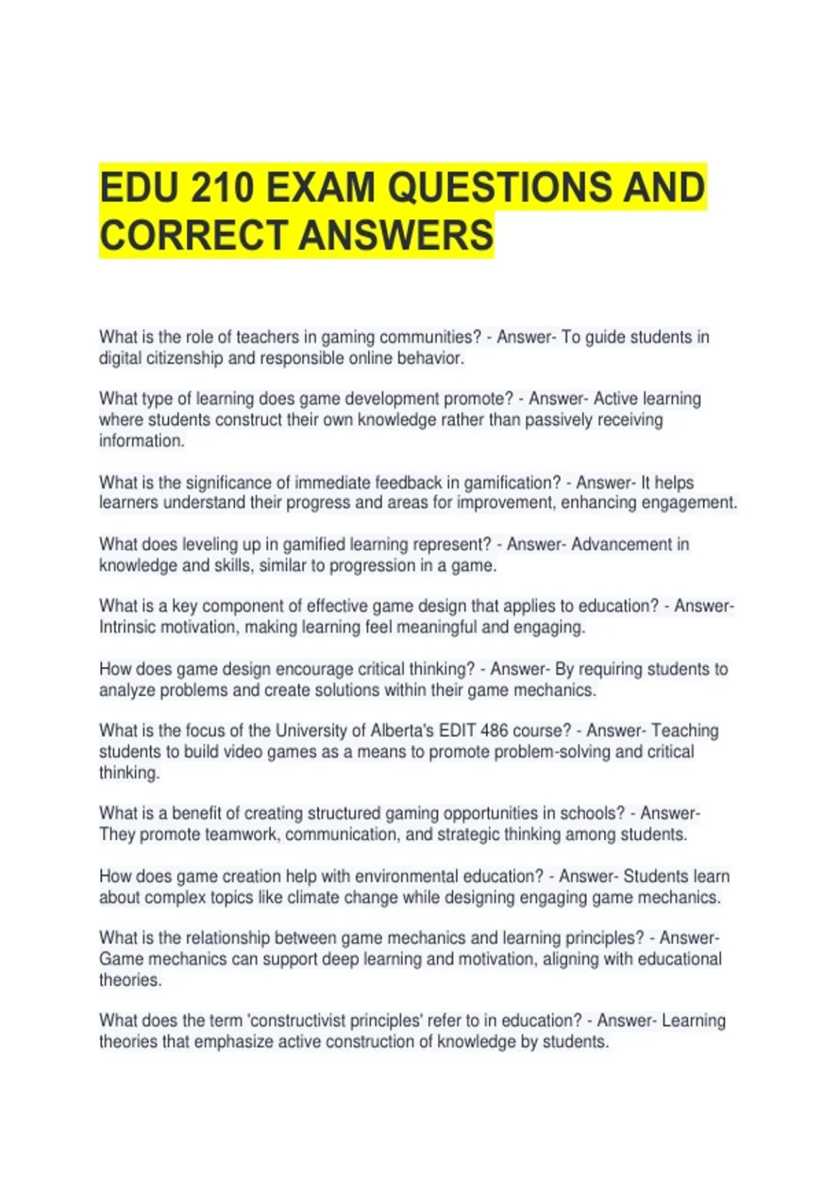 EDU 210 EXAM QUESTIONS AND CORRECT ANSWERS