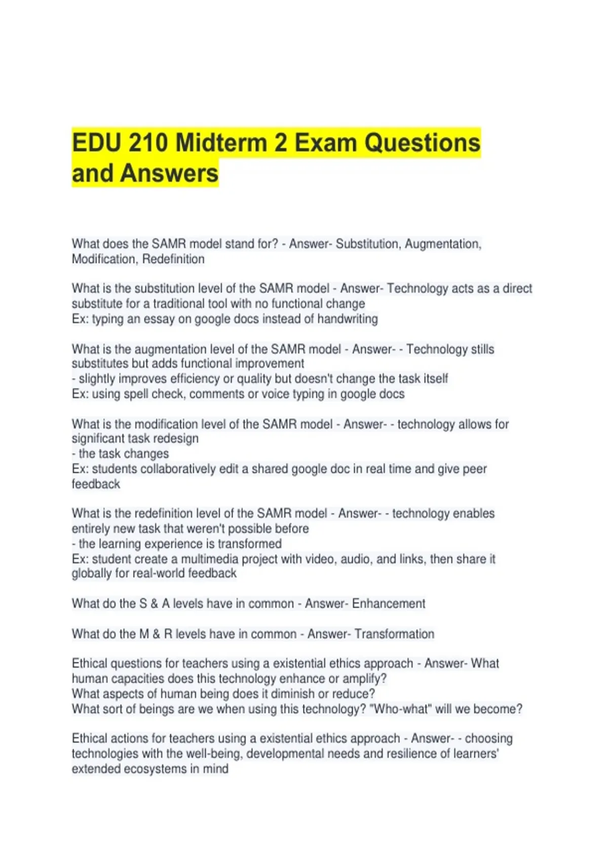 EDU 210 Midterm 2 Exam Questions and Answers