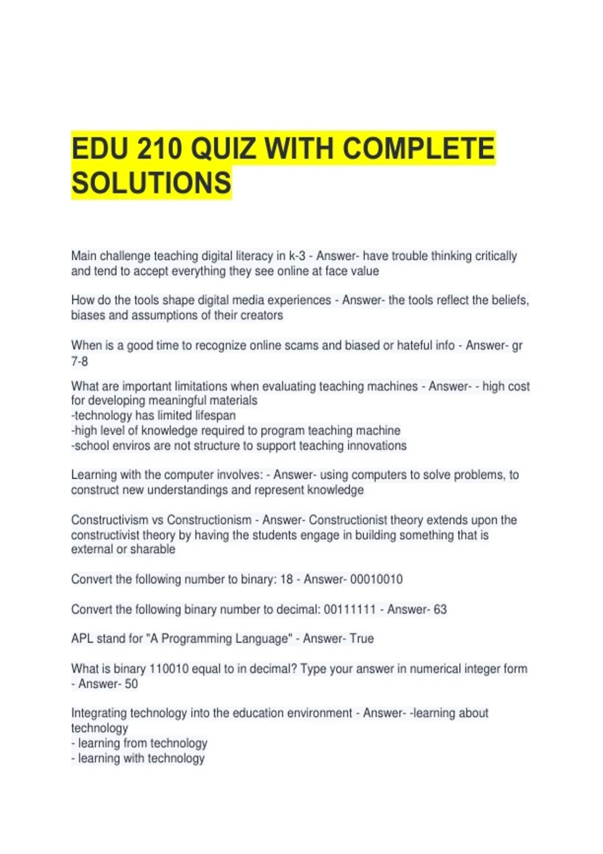 Integrating technology into the education environment - Answer- -learning about