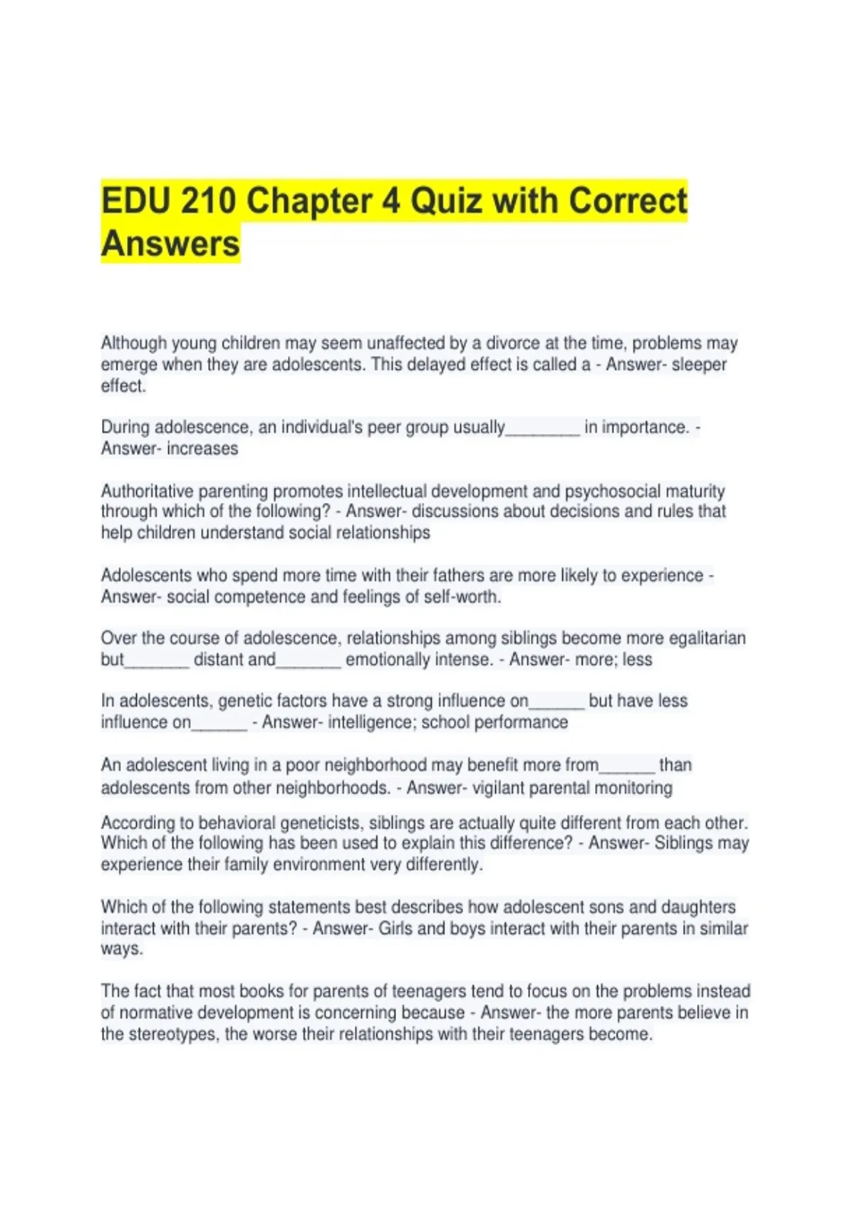 emerge when they are adolescents. This delayed effect is called a - Answer- sleeper