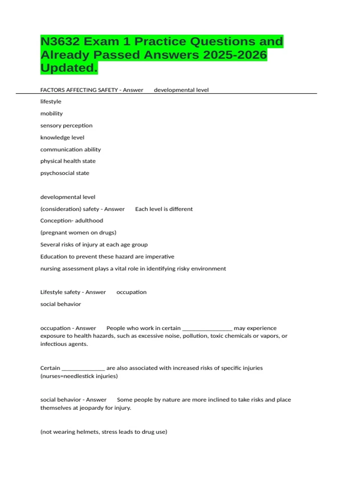 Lifestyle safety - Answer occupation