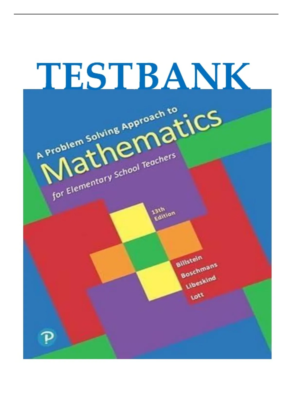 Test Bank for A Problem-Solving Approach to Mathematics for Elementary School Teachers, 13th Edition Rick Billstein, Shlomo Libeskind, Johnny Lott||ISBN NO:||ISBN NO:||All Chapters||Complete Guide A+ ISBN:9780135184172