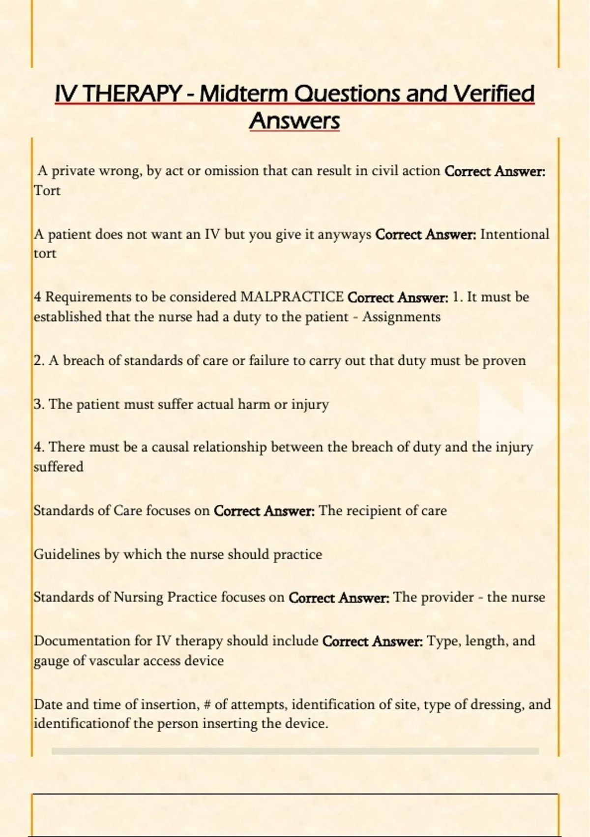 Documentation for IV therapy should include Correct Answer: Type, length, and
