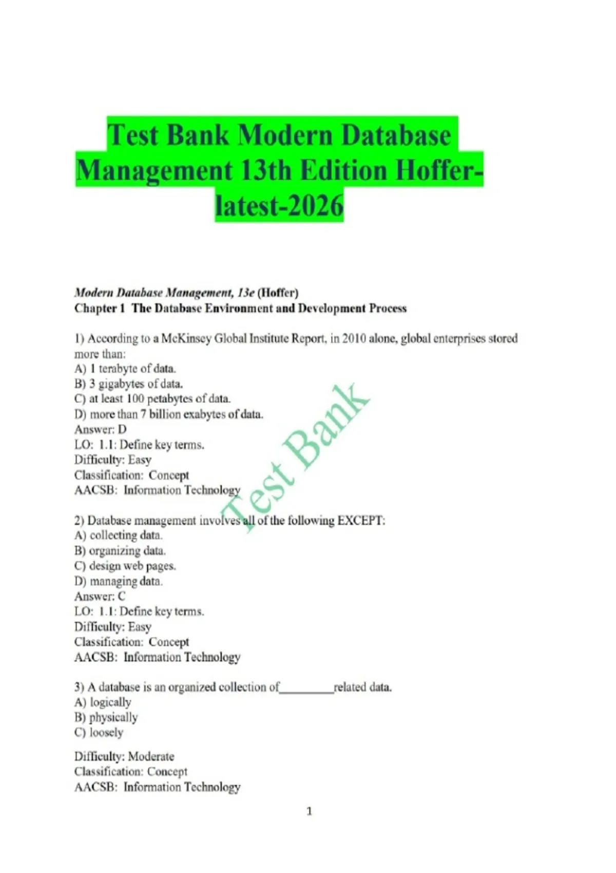 Test Bank Modern Database Management 13th Edition Hoffer- latest-2026..