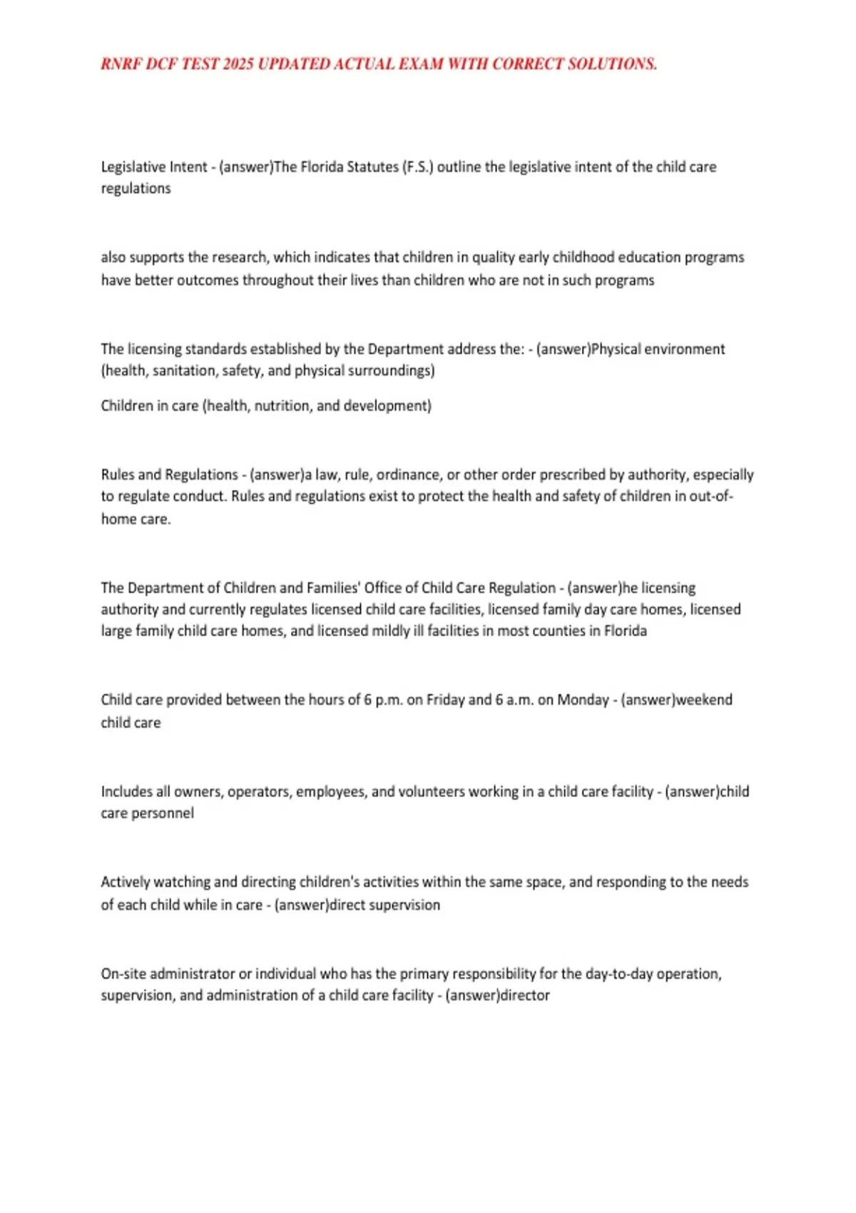 RNRF DCF TEST 2025 UPDATED ACTUAL EXAM WITH CORRECT SOLUTIONS.