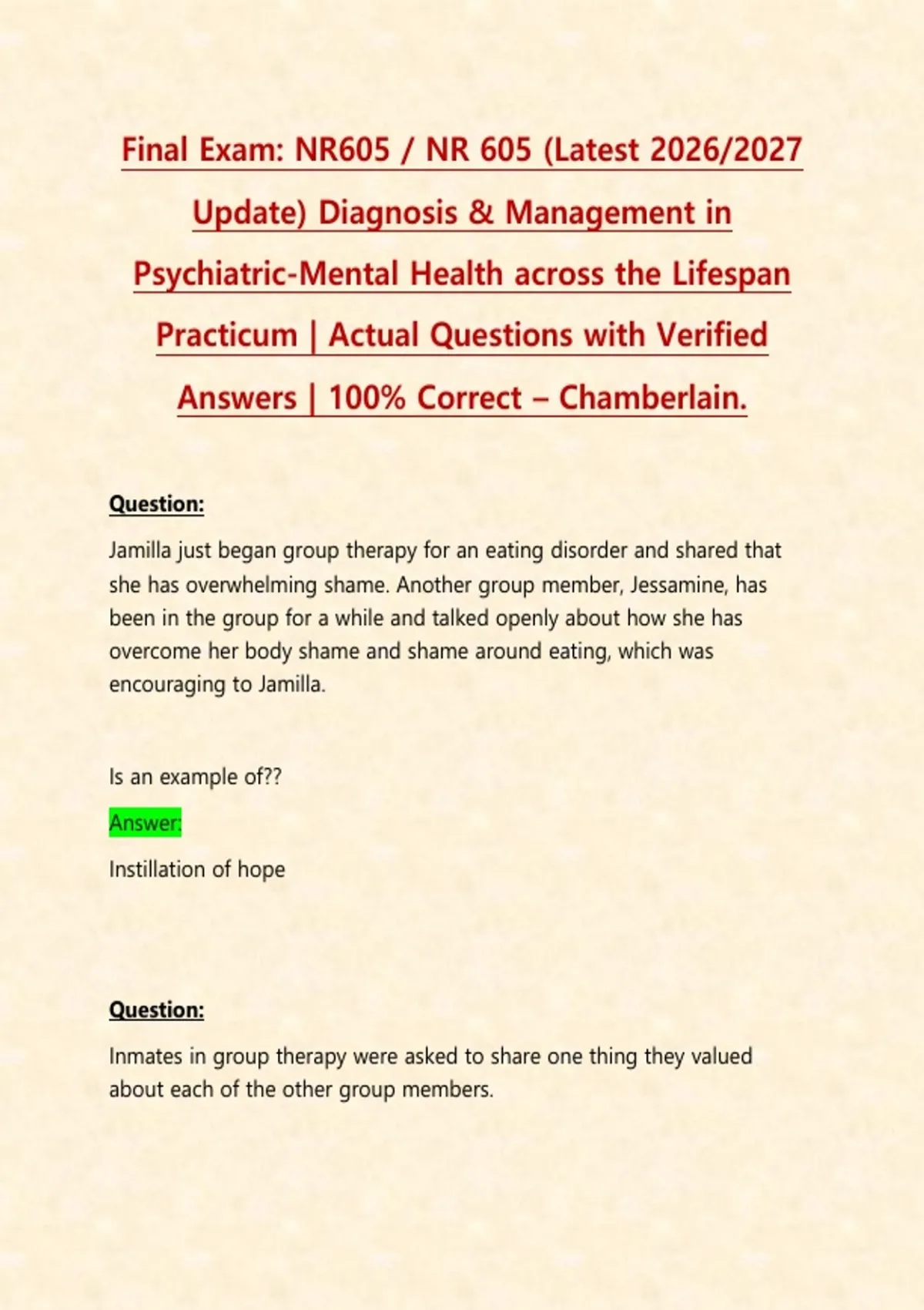 Answers | 100% Correct – Chamberlain.