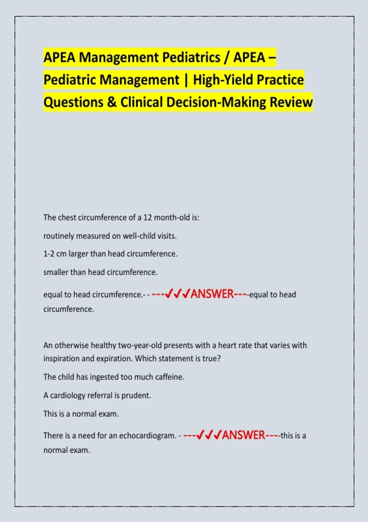 APEA Management Pediatrics / APEA – Pediatric Management | High-Yield Practice Questions & Clinical Decision-Making Review