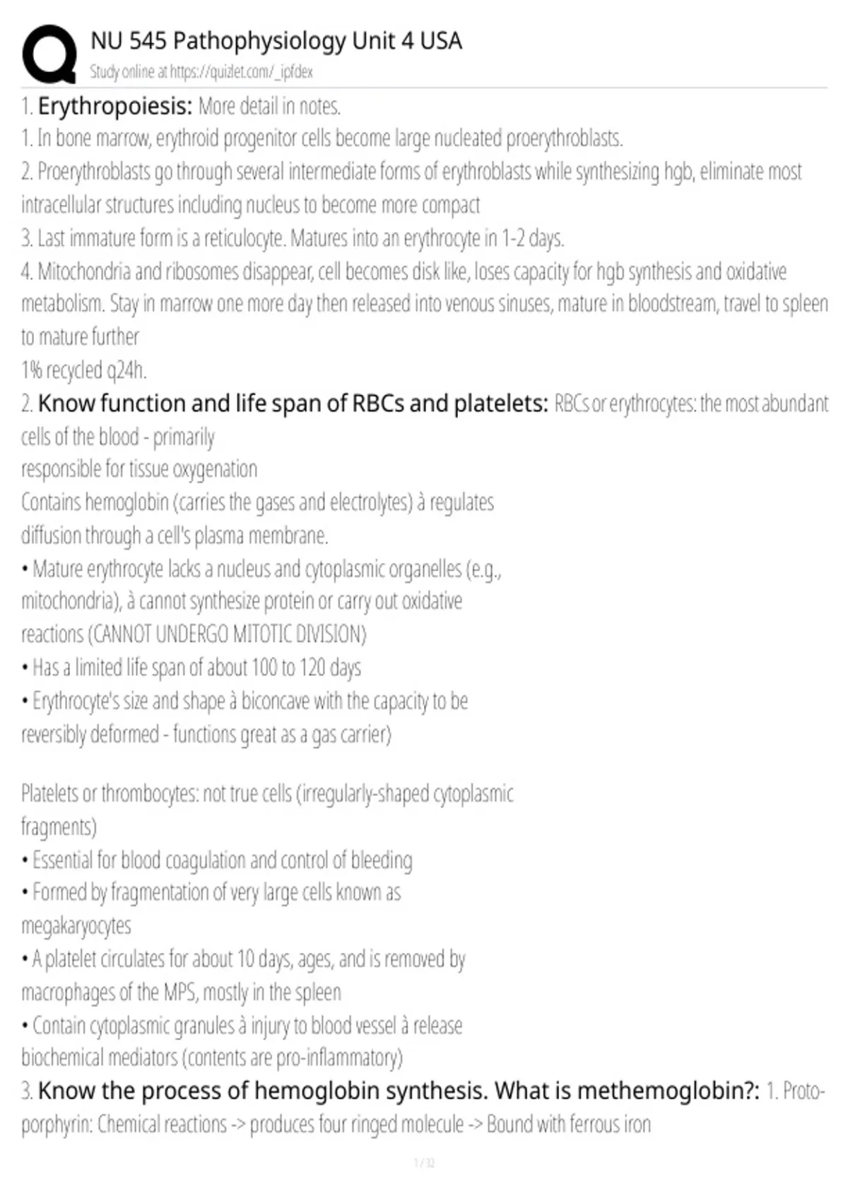 2. Know function and life span of RBCs and platelets: RBCs or erythrocytes: the most abundant