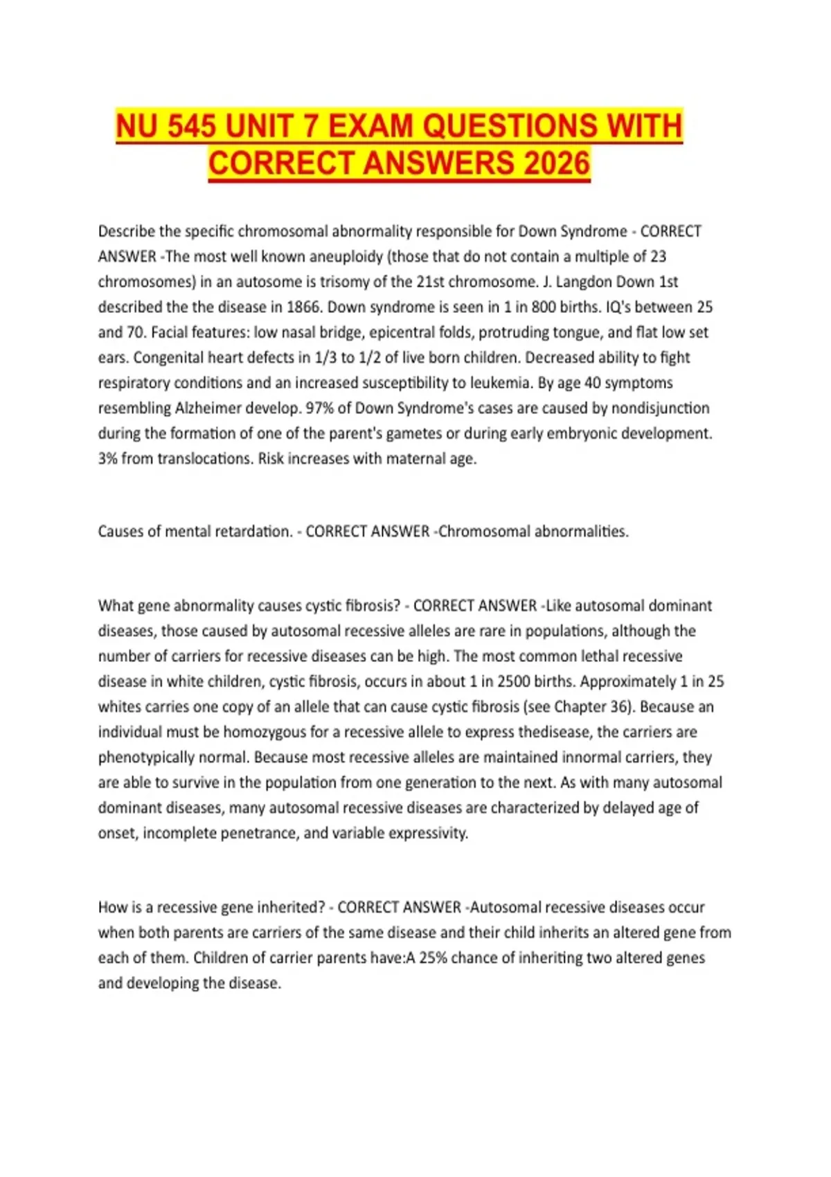 NU 545 UNIT 7 EXAM QUESTIONS WITH CORRECT ANSWERS 2026
