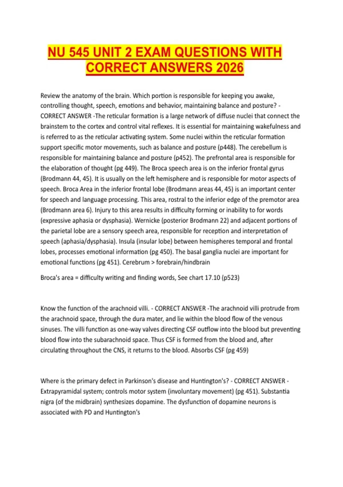 CORRECT ANSWERS 2026