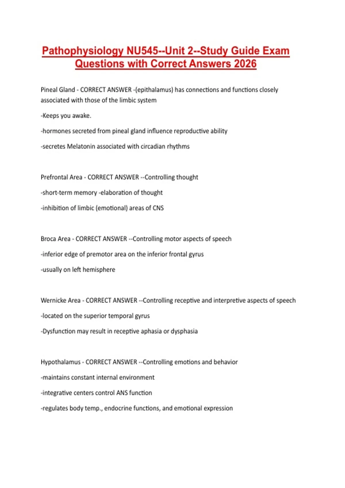 Pathophysiology NU545--Unit 2--Study Guide Exam
