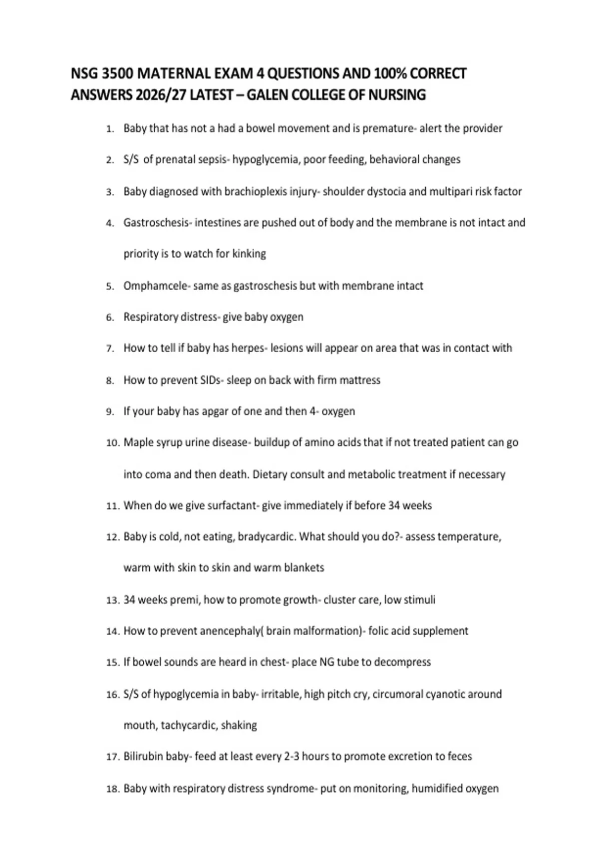 ANSWERS 2026/27 LATEST – GALEN COLLEGE OF NURSING