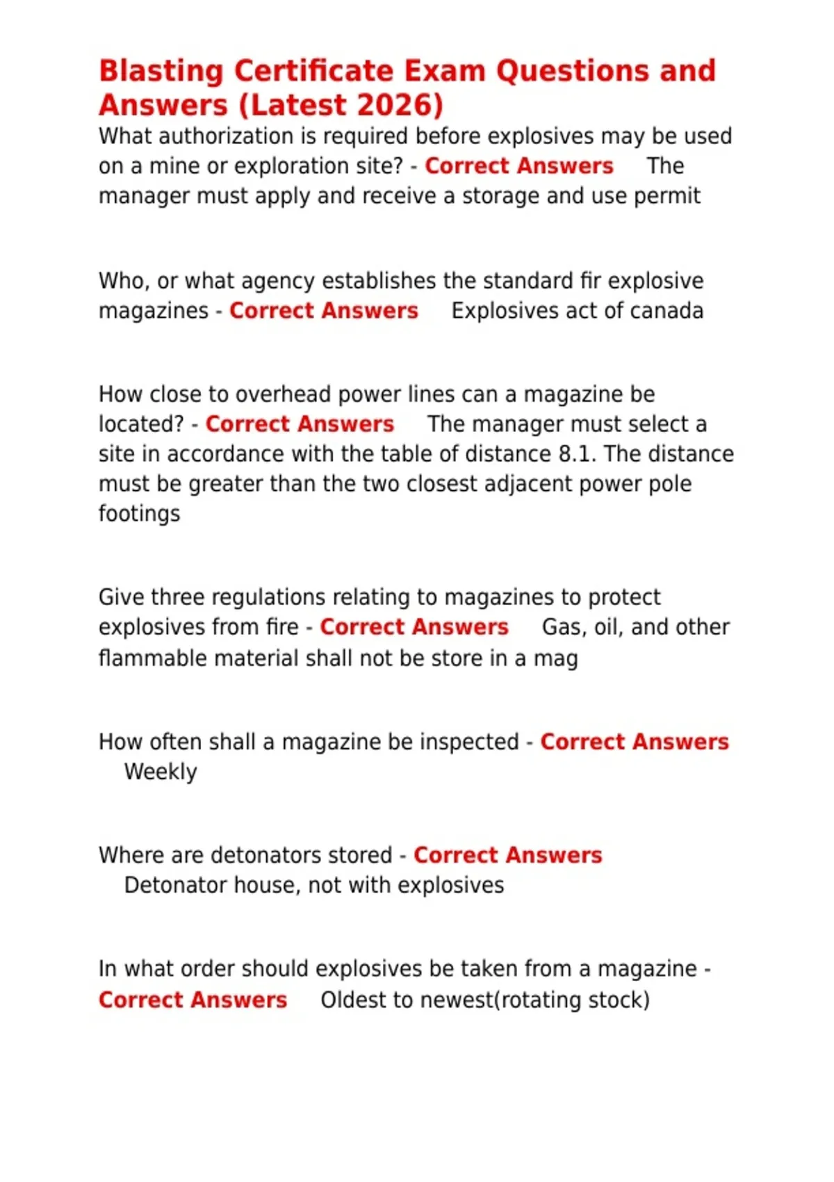 , Blasting Certificate Exam Questions and