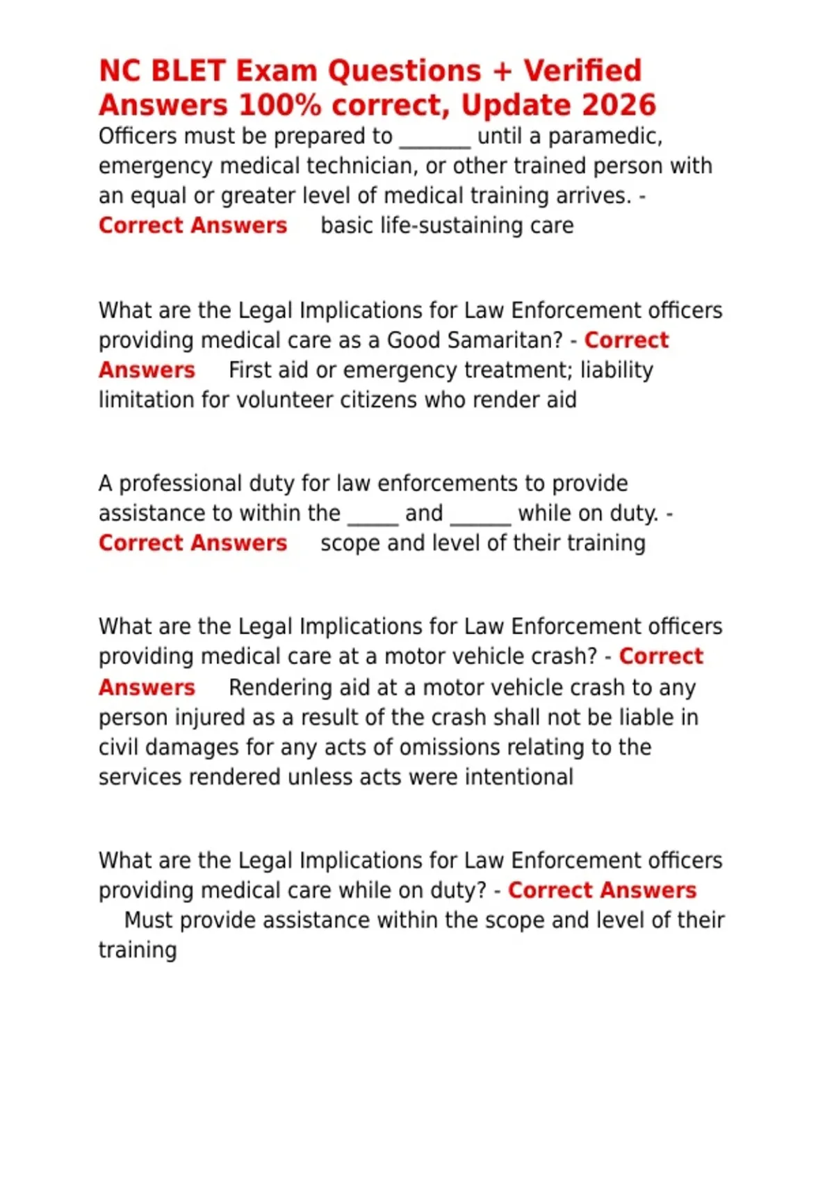 NC BLET Exam Questions + Verified Answers 100- correct, Update 2026