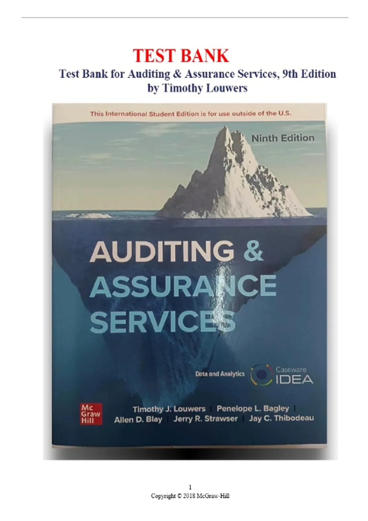 Test Bank Auditing & Assurance Services, 9th Edition by Penelope Bagley; Timothy J. Louwers