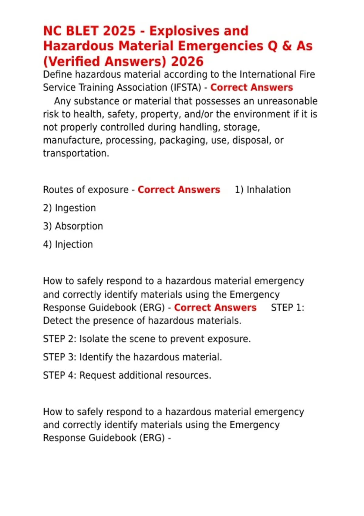 Routes of exposure - Correct Answers ✅1) Inhalation