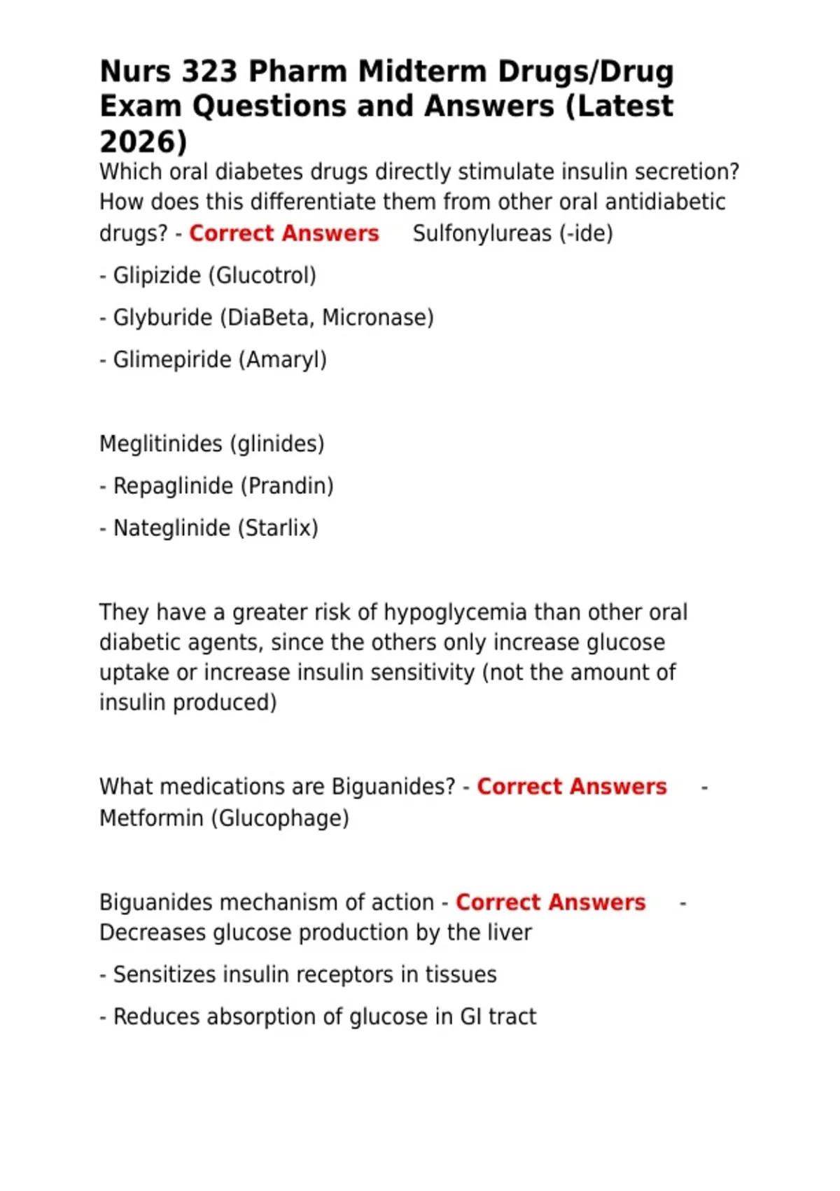 drugs? - Correct Answers ✅Sulfonylureas (-ide)