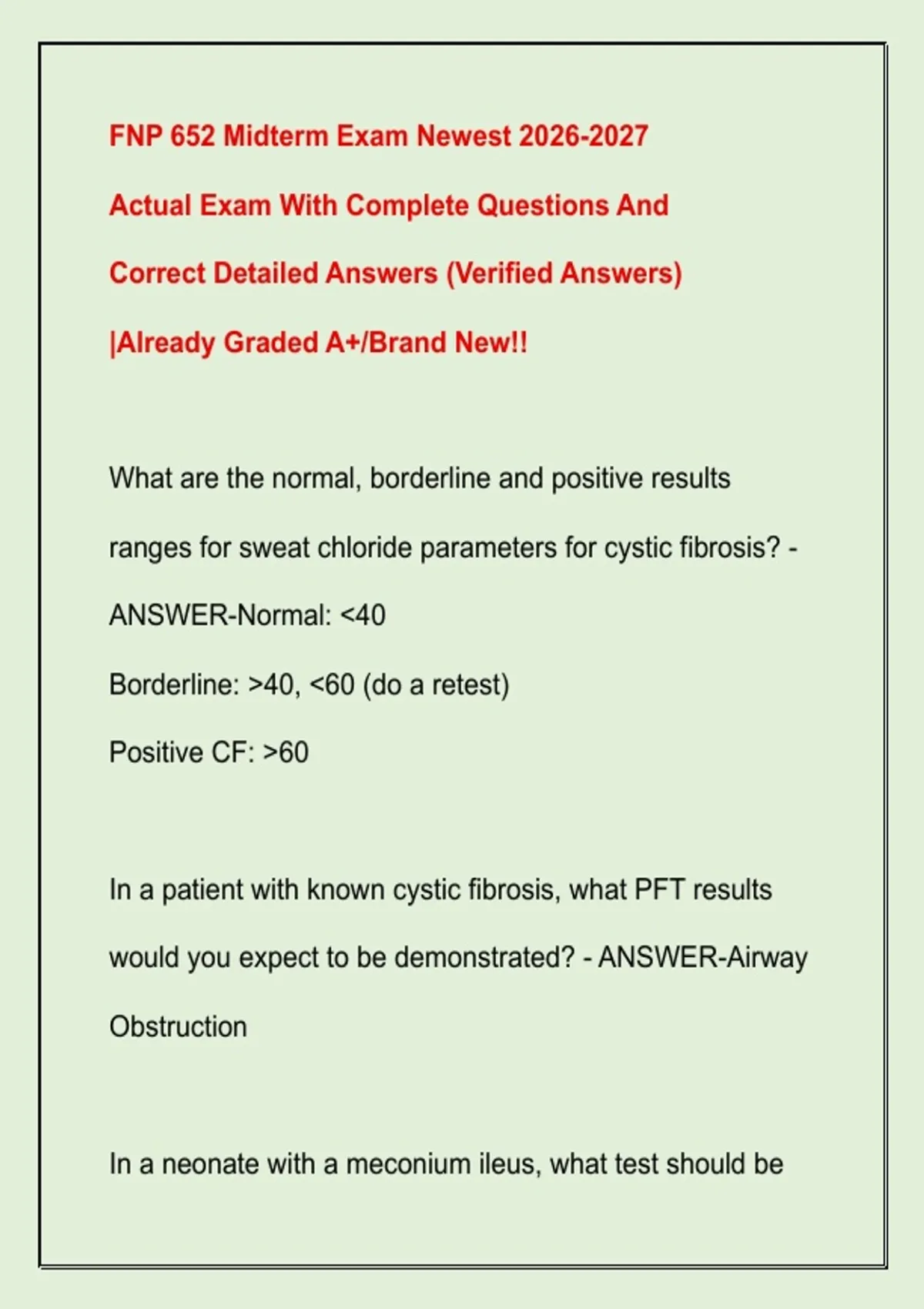 FNP 652 Midterm Exam Newest Actual Exam With Complete Questions And Correct Detailed Answers (Verified Answers) |Already Graded A+/Brand New!!