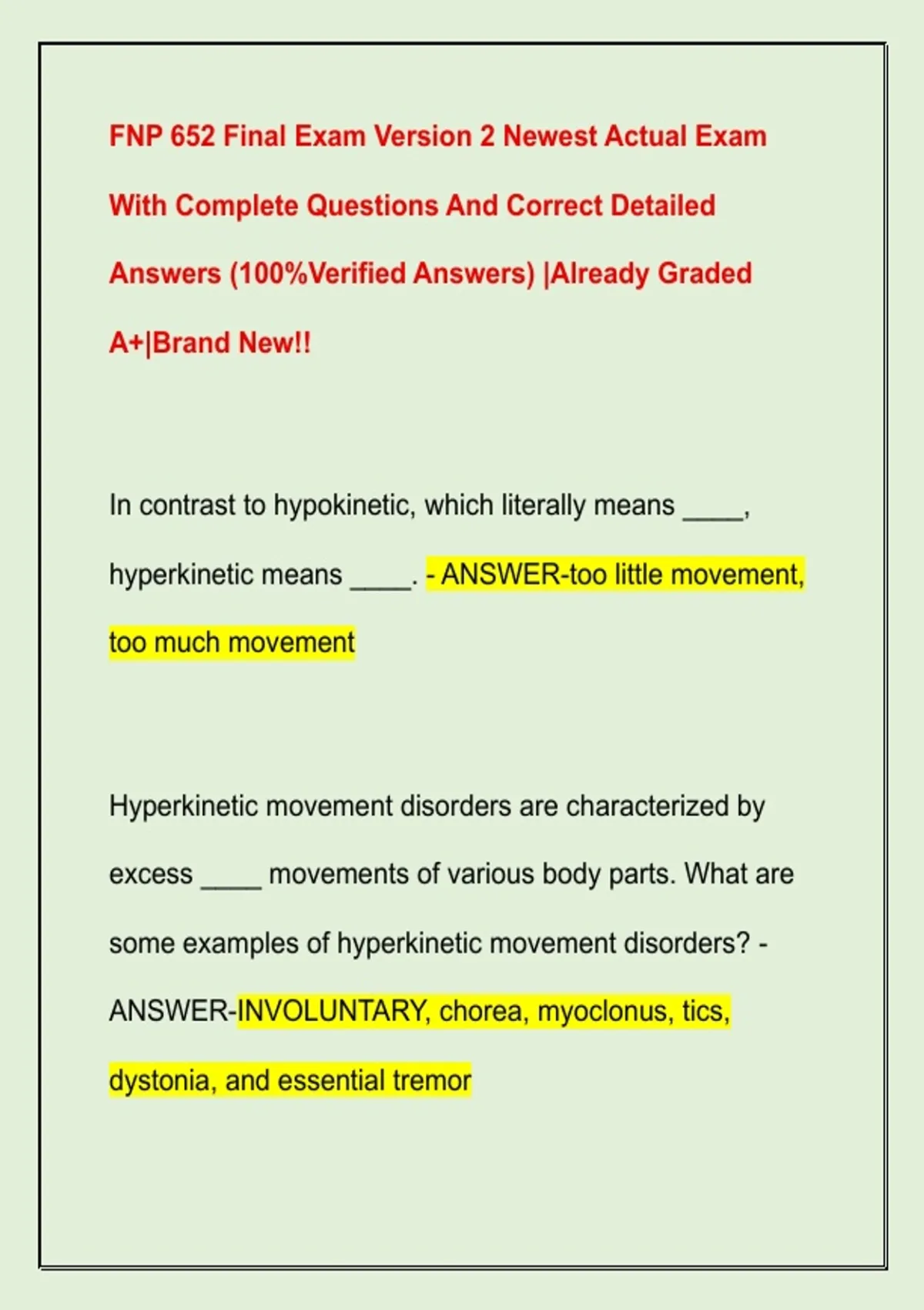 FNP 652 Final Exam Version 2 Newest Actual Exam With Complete Questions And Correct Detailed Answers (100%Verified Answers) |Already Graded A+|Brand New!!