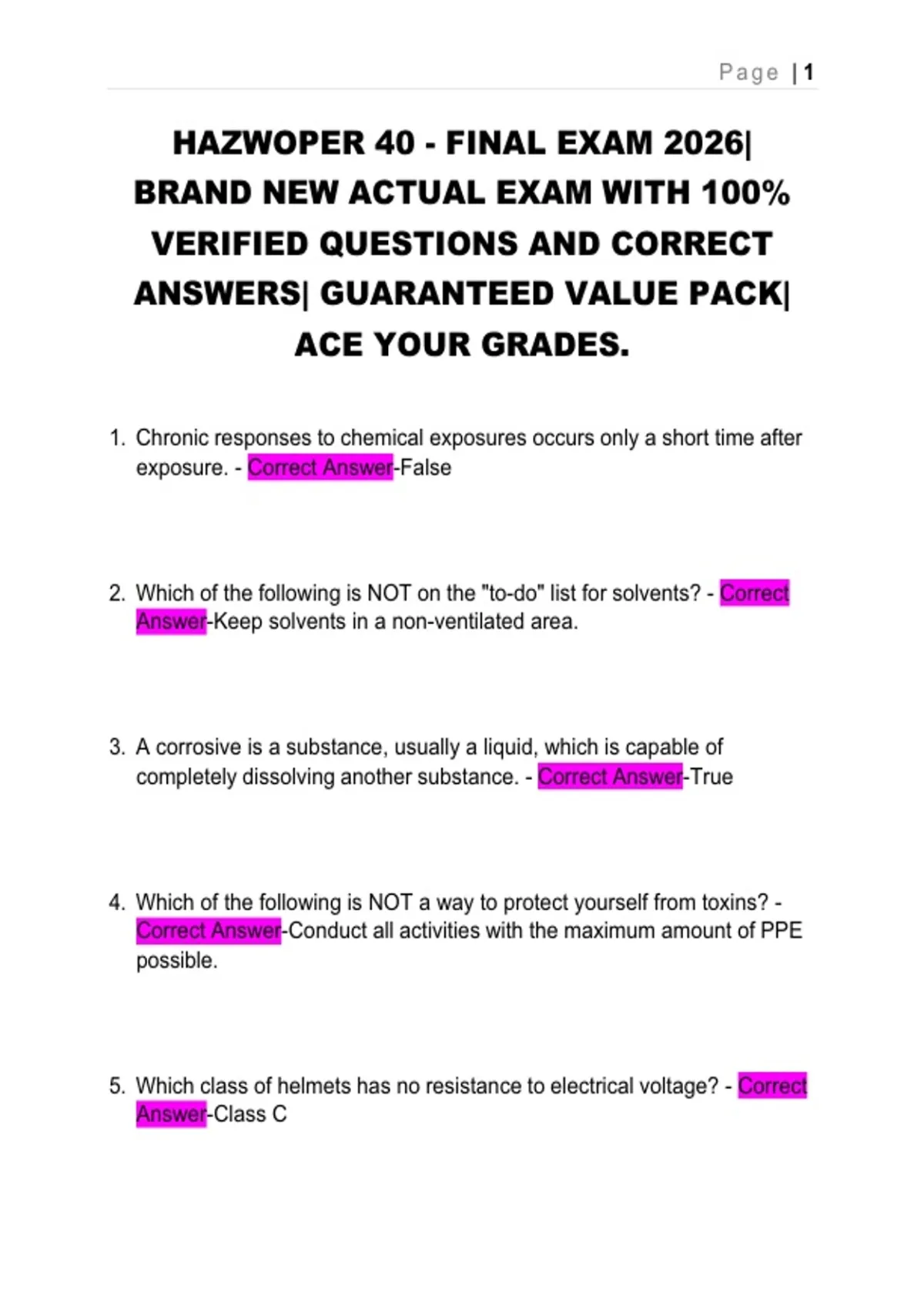 ANSWERS| GUARANTEED VALUE PACK|