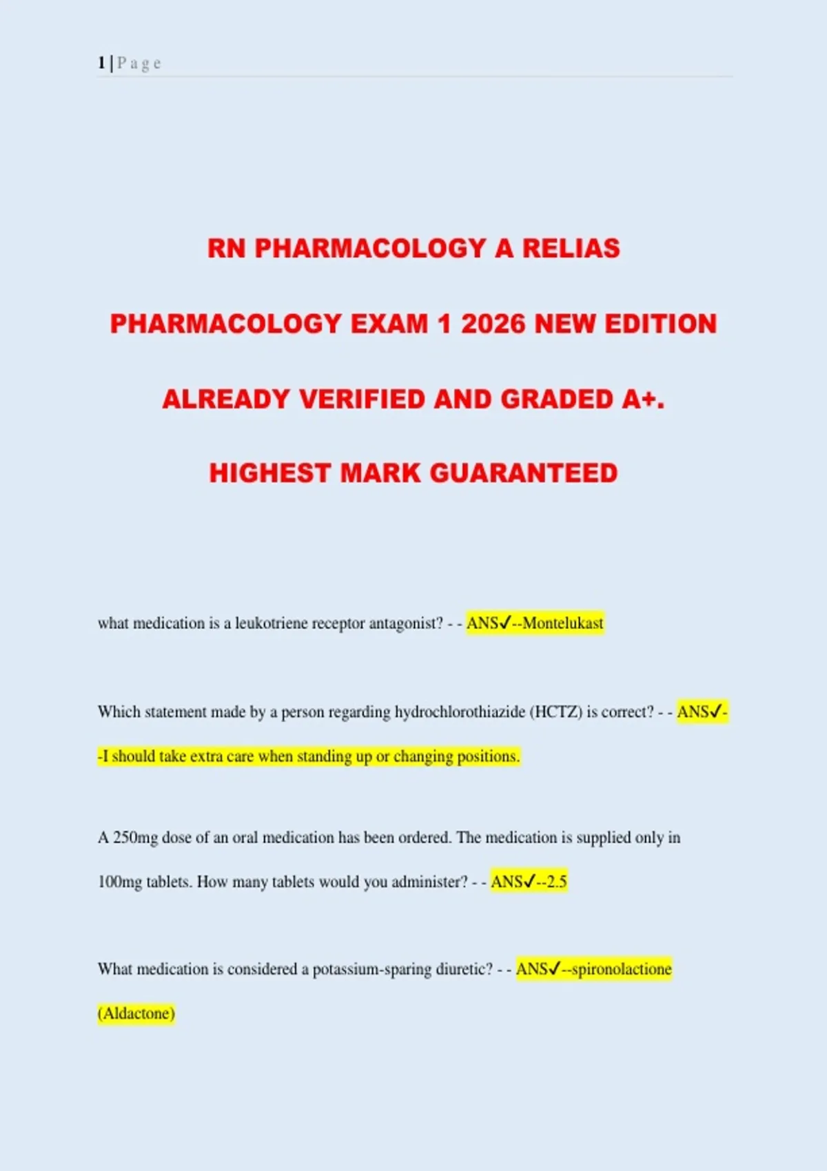 RN PHARMACOLOGY A RELIAS