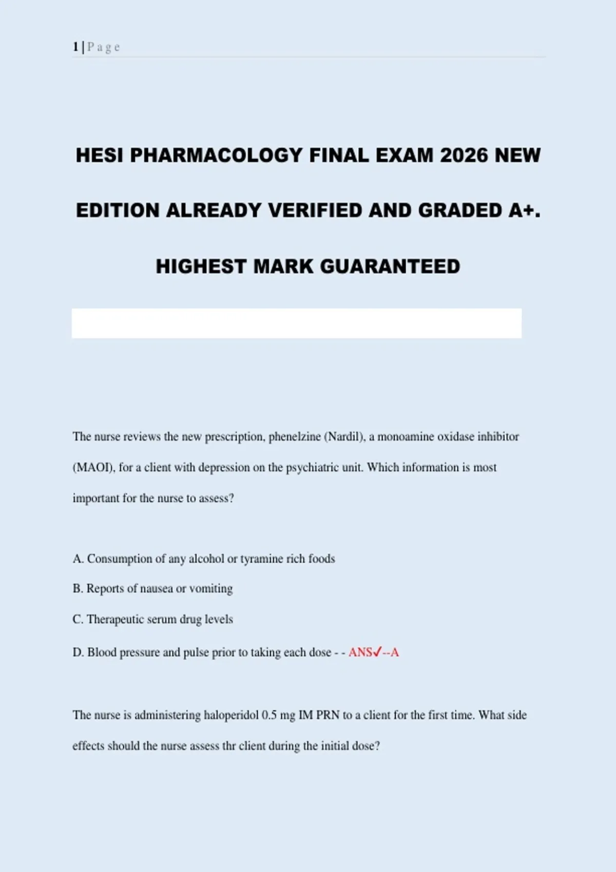 HESI PHARMACOLOGY FINAL EXAM 2026 NEW