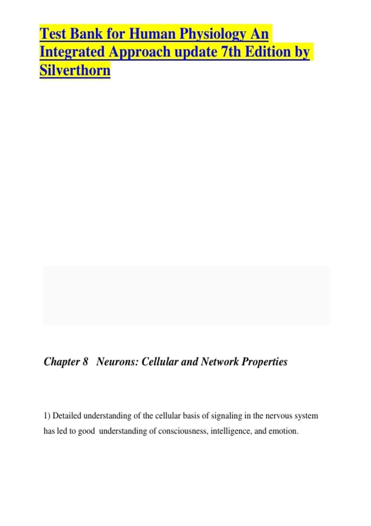 , Test Bank for Human Physiology An