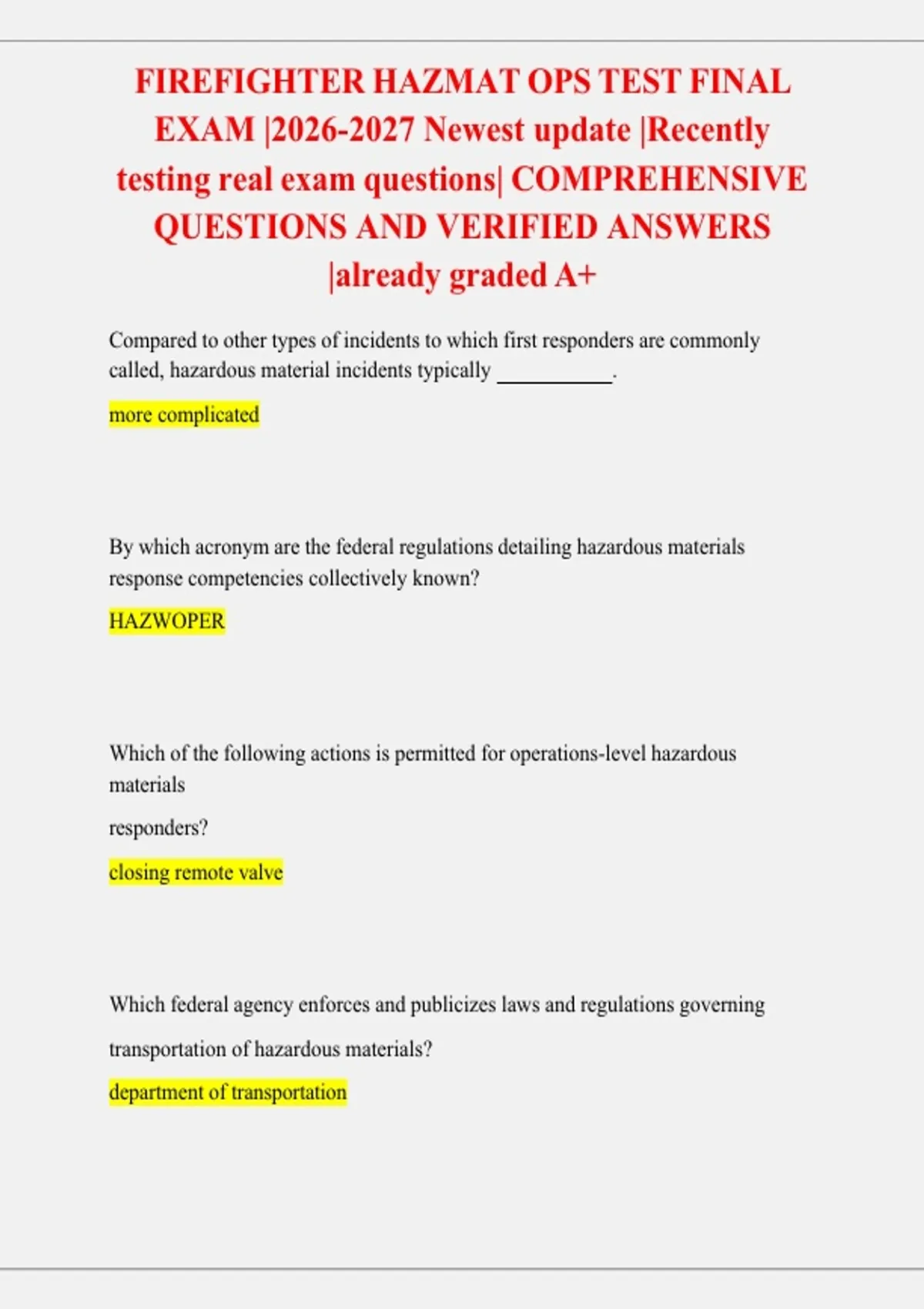 , FIREFIGHTER HAZMAT OPS TEST FINAL