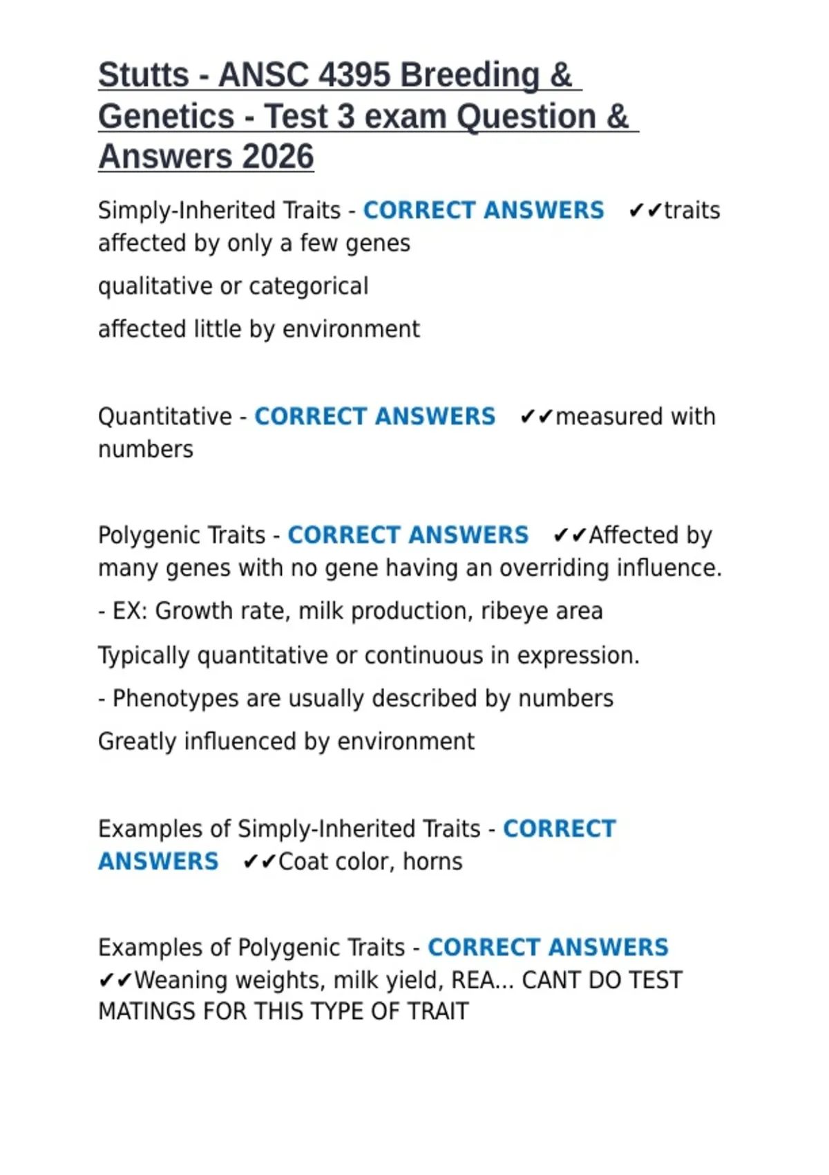 Stutts - ANSC 4395 Breeding & Genetics Test 3 exam Question & Answers 2026.docx