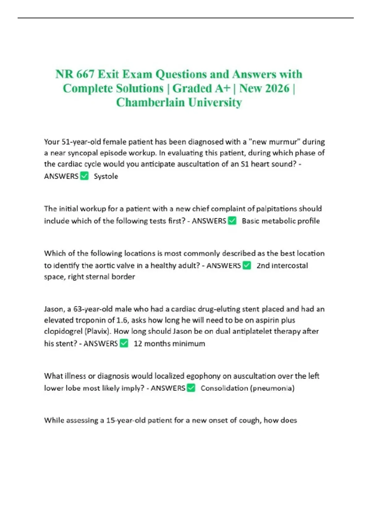 NR 667 Exit Exam Questions and Answers with Complete Solutions | Graded A+ | New 2026 | Chamberlain University
