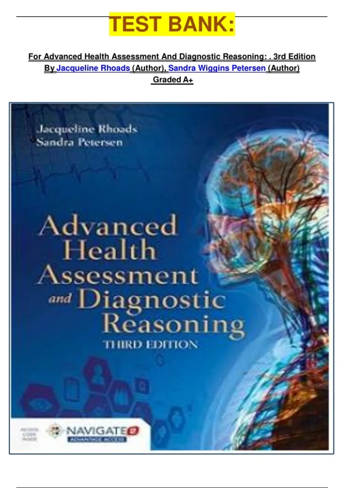TEST BANK: For Advanced Health Assessment And Diagnostic Reasoning: . 3rd Edition By Jacqueline Rhoads (Author), Sandra Wiggins Petersen (Author) Graded A+