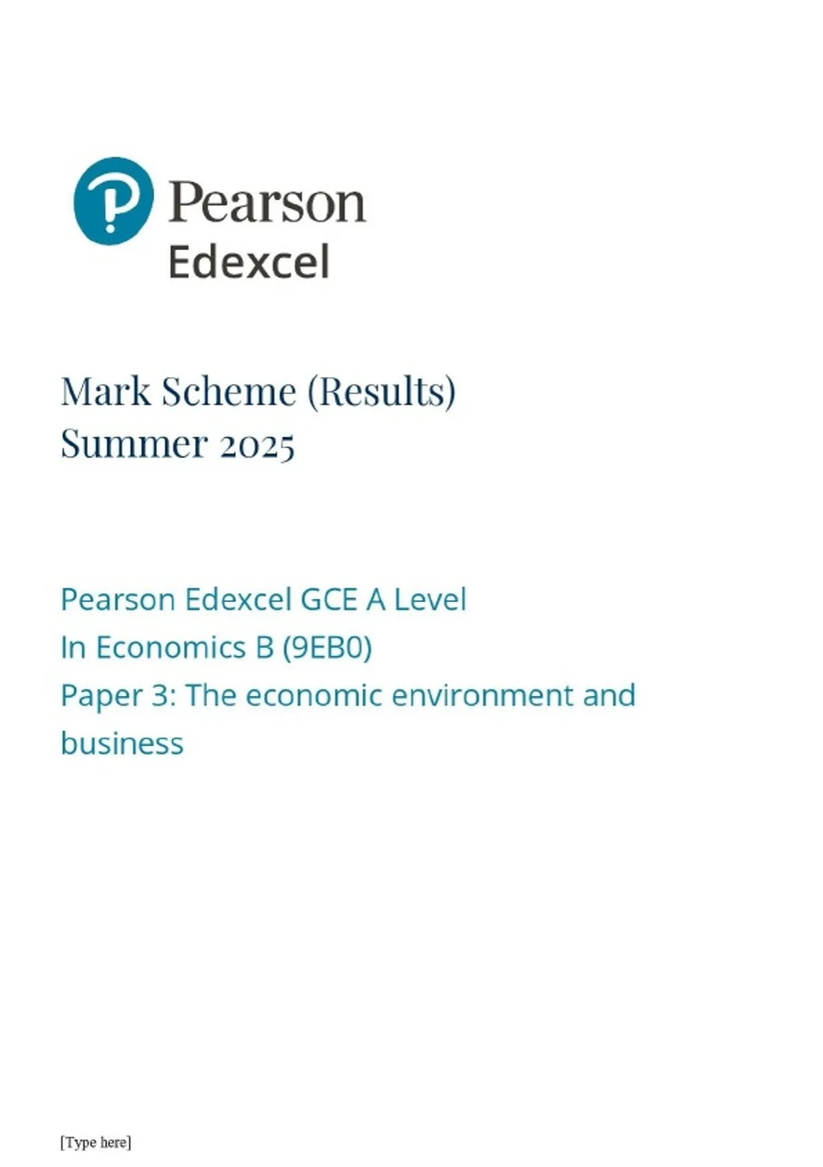 A-LEVEL EDEXCEL 2025 ECONOMICS B PAPER 3 MARK SCHEME