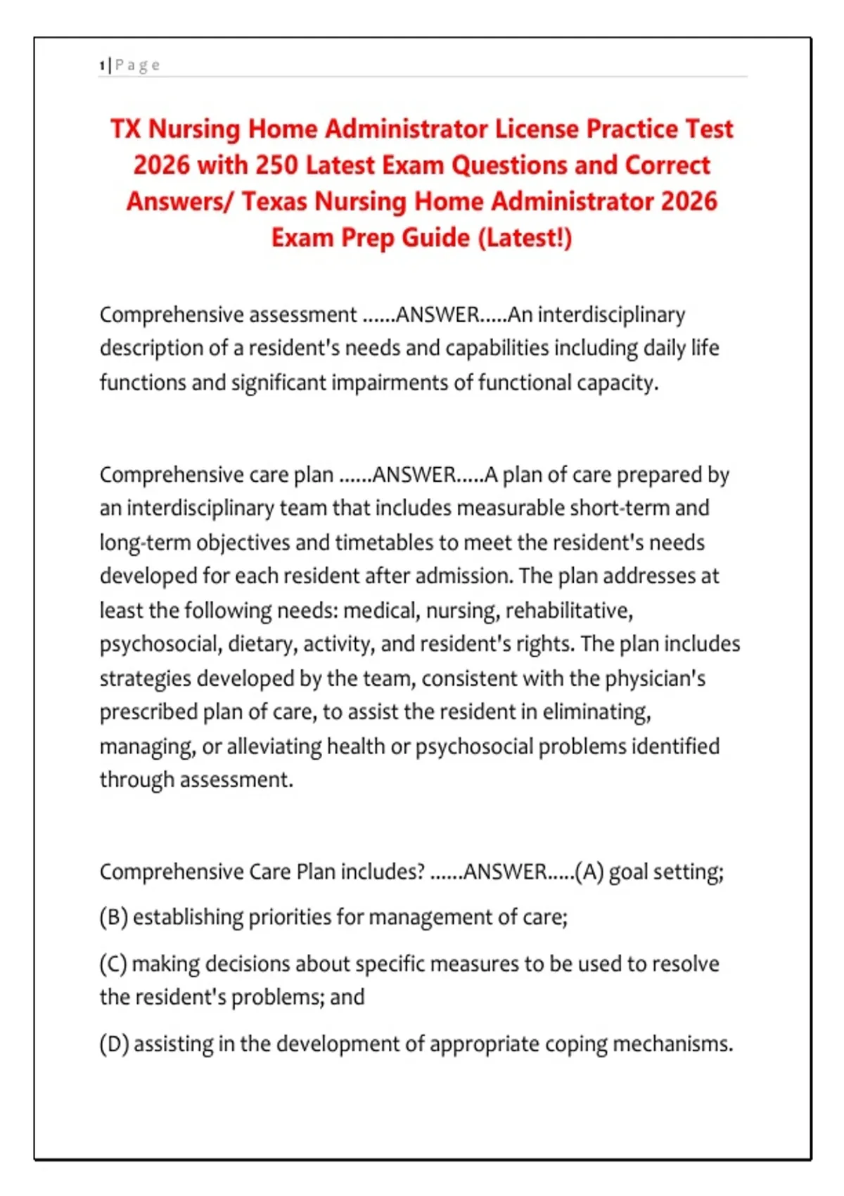 Answers/ Texas Nursing Home Administrator 2026