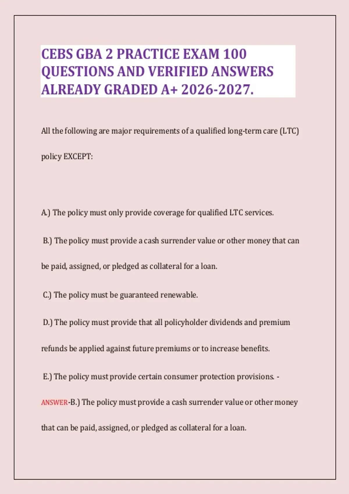 ANSWER-B.) The policy must provide a cash surrender value or other money