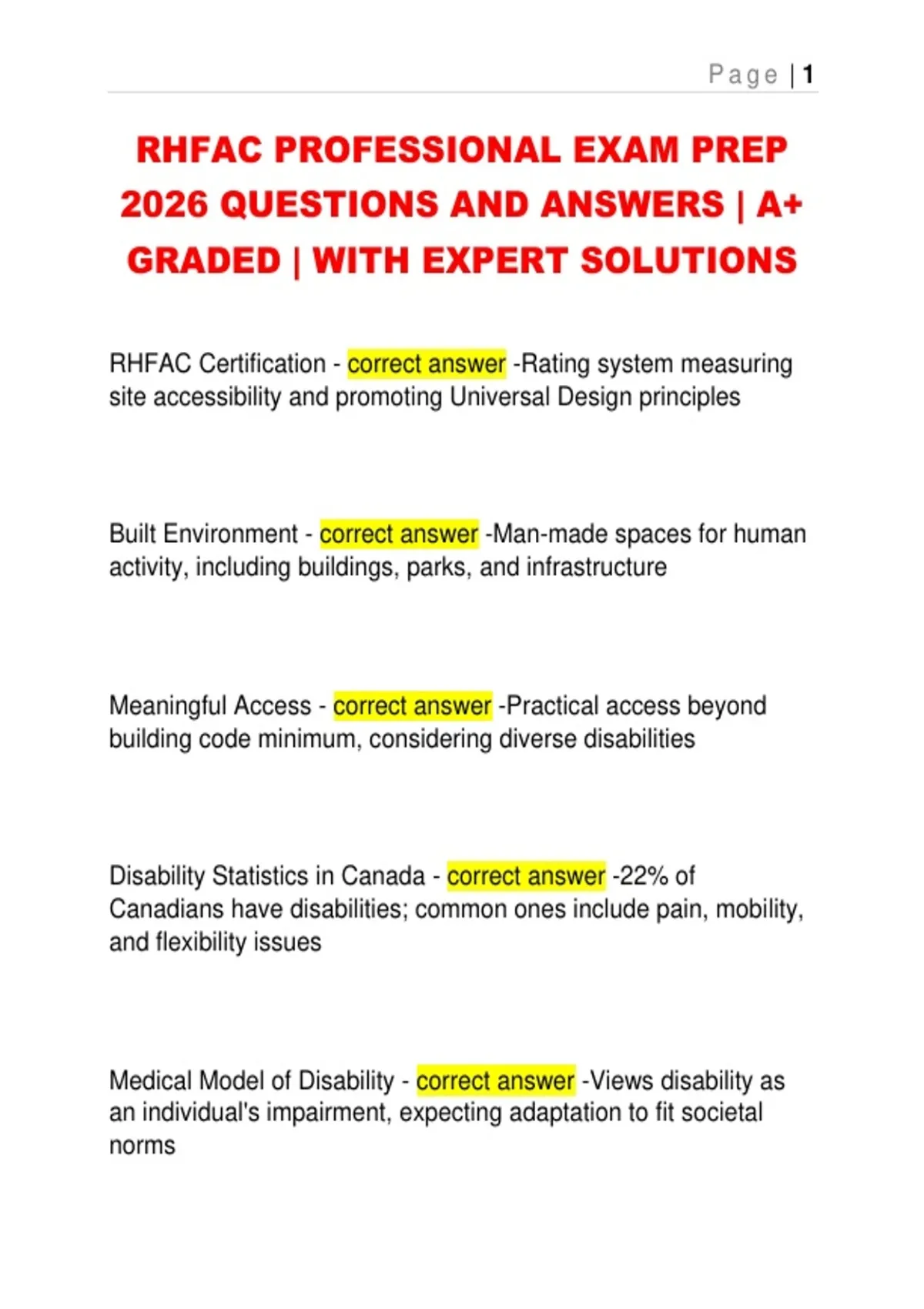 RHFAC PROFESSIONAL EXAM PREP 2026 QUESTIONS AND ANSWERS | A+ GRADED | WITH EXPERT SOLUTIONS