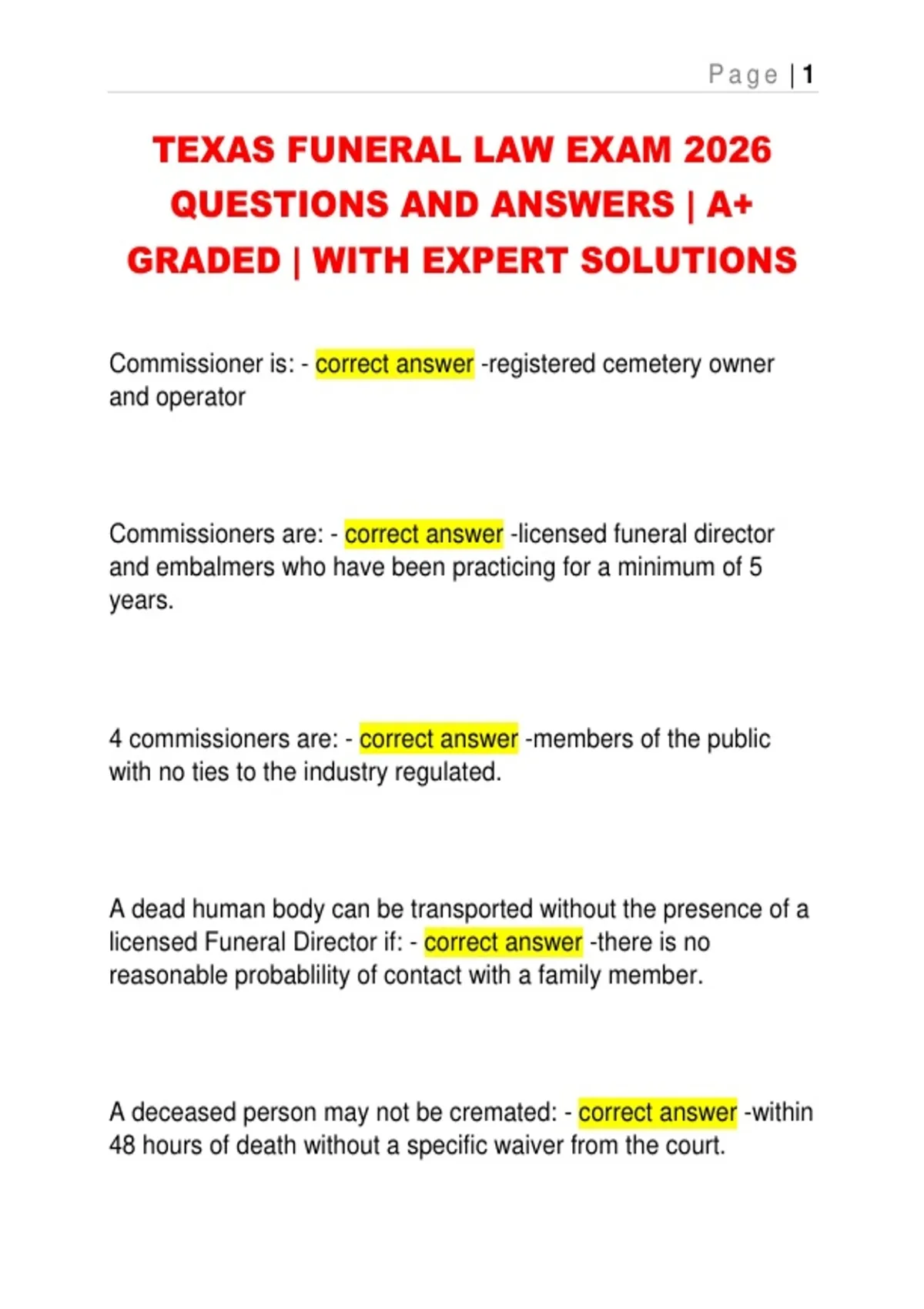 TEXAS FUNERAL LAW EXAM 2026
