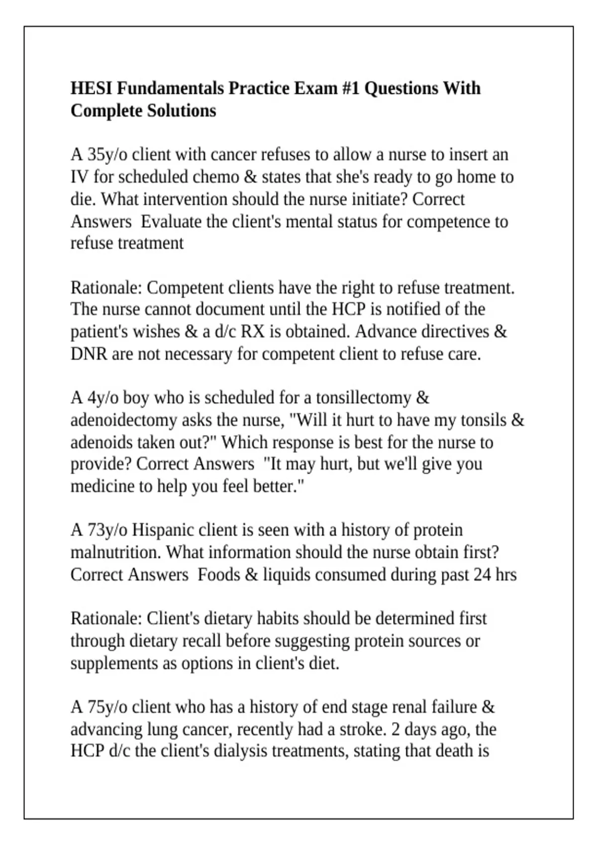 HESI Fundamentals Herzing University -HESI Fundamentals Practice Exam #1 Questions With Complete Solutions
